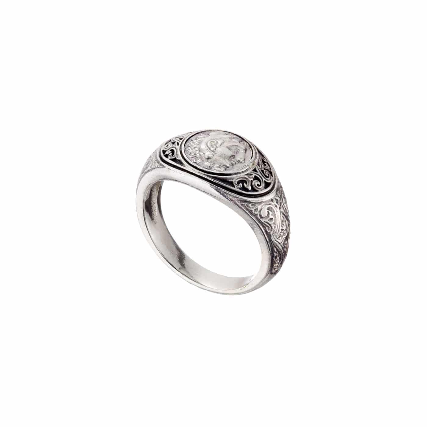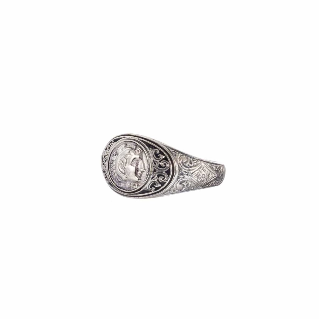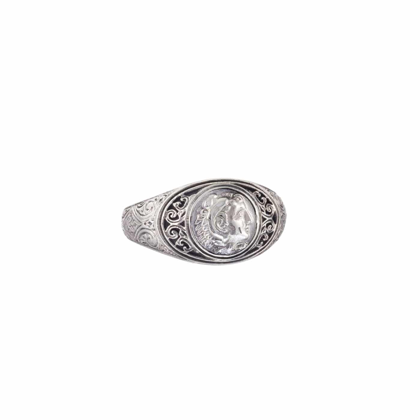 Greek Jewelry, antique coin symbol Alexander the great for men’s ring and sterling silver 925