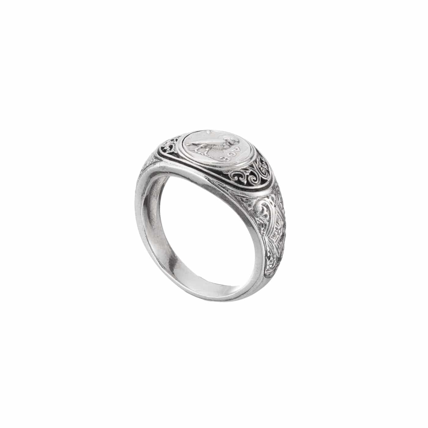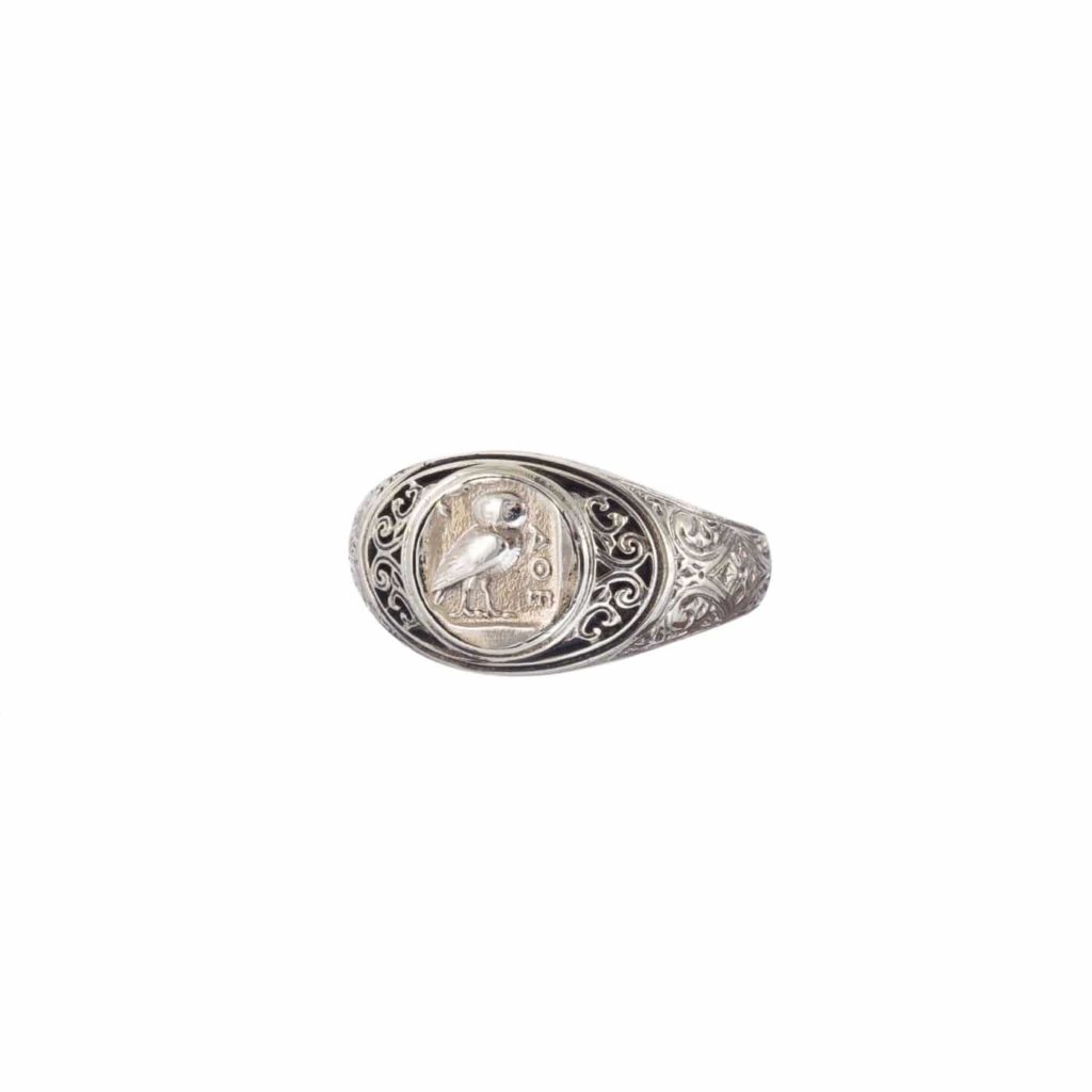 Greek Jewelry, Men’s antique coin ring symbol owl sterling silver 925