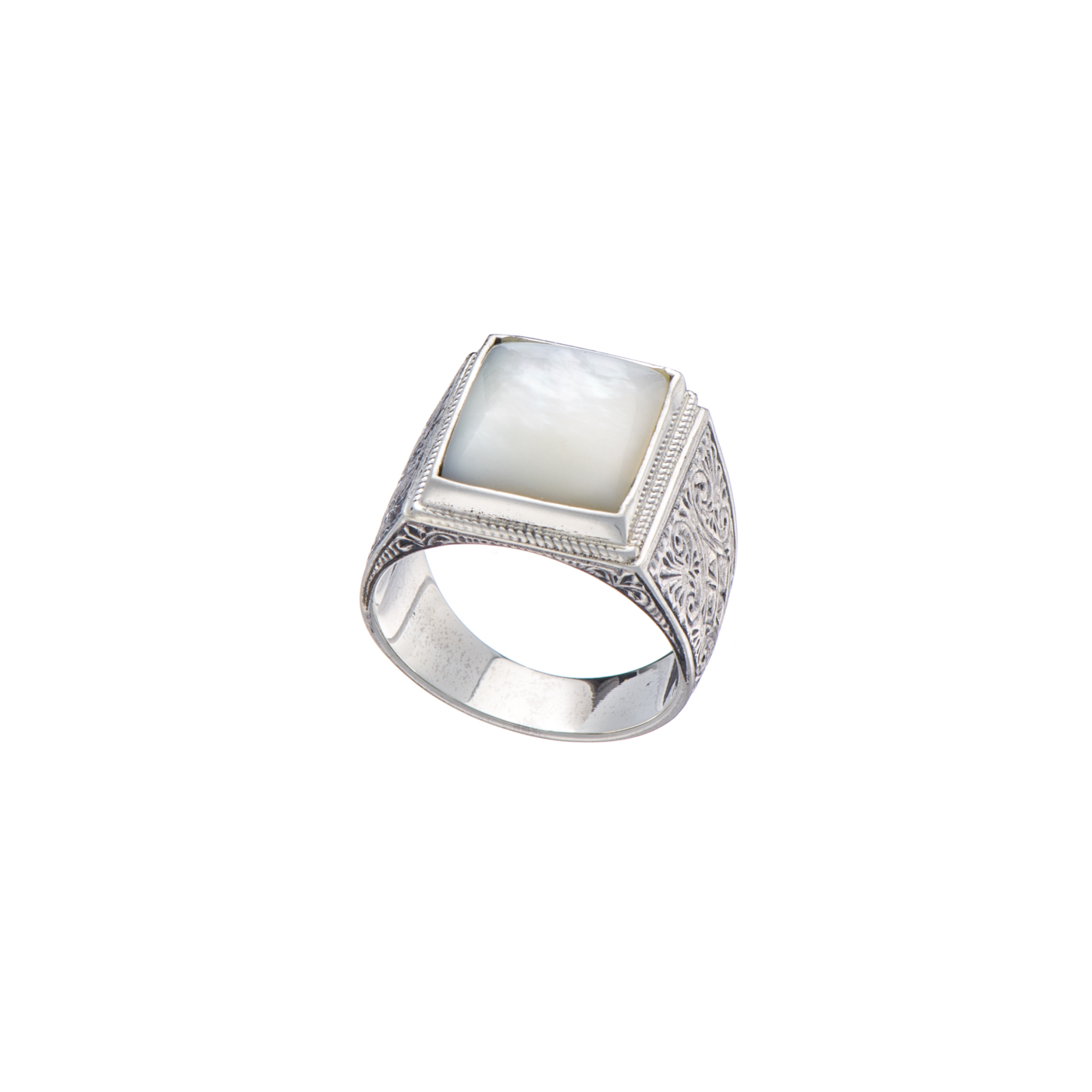 Engraved Silver Ring for Men with Semi Precious Stones