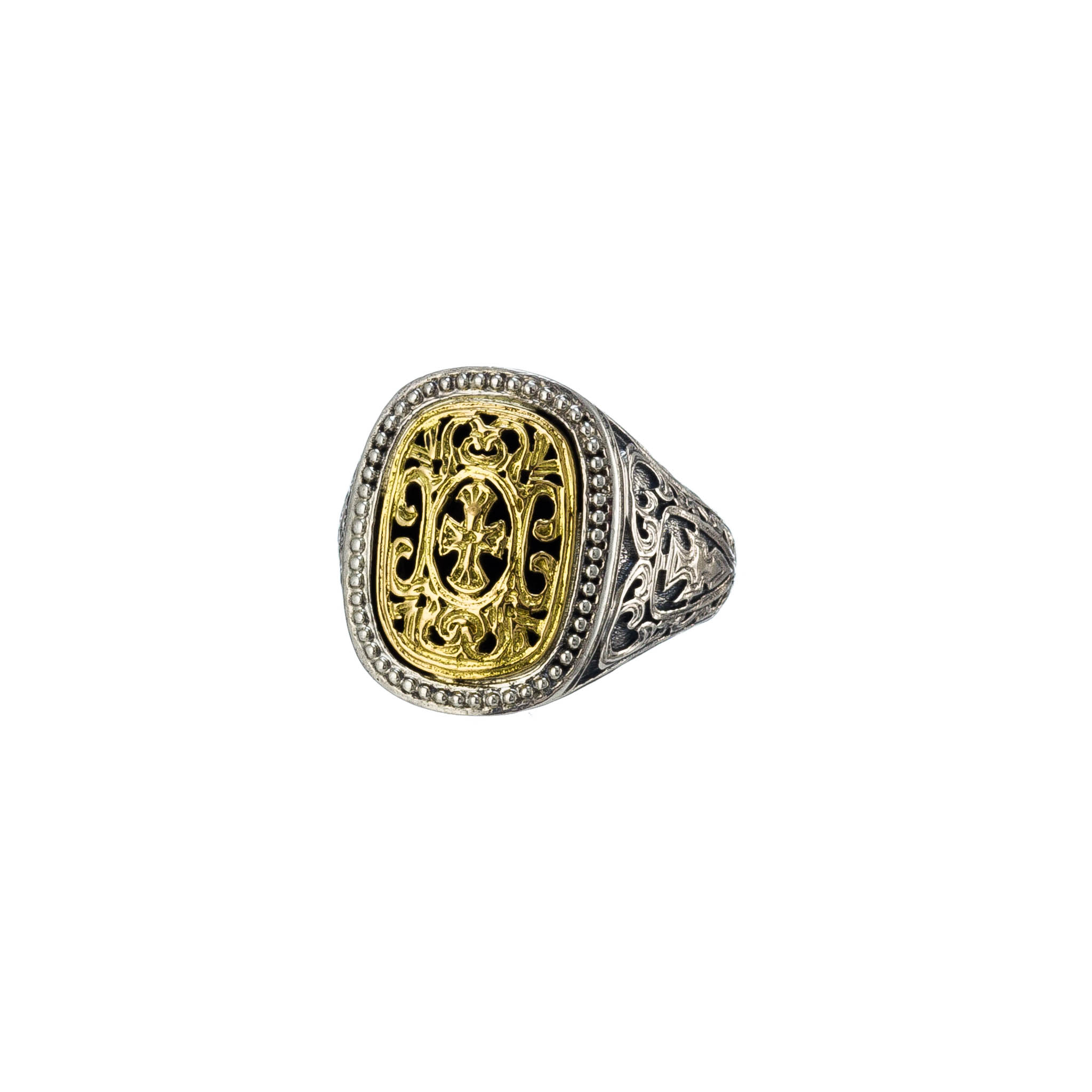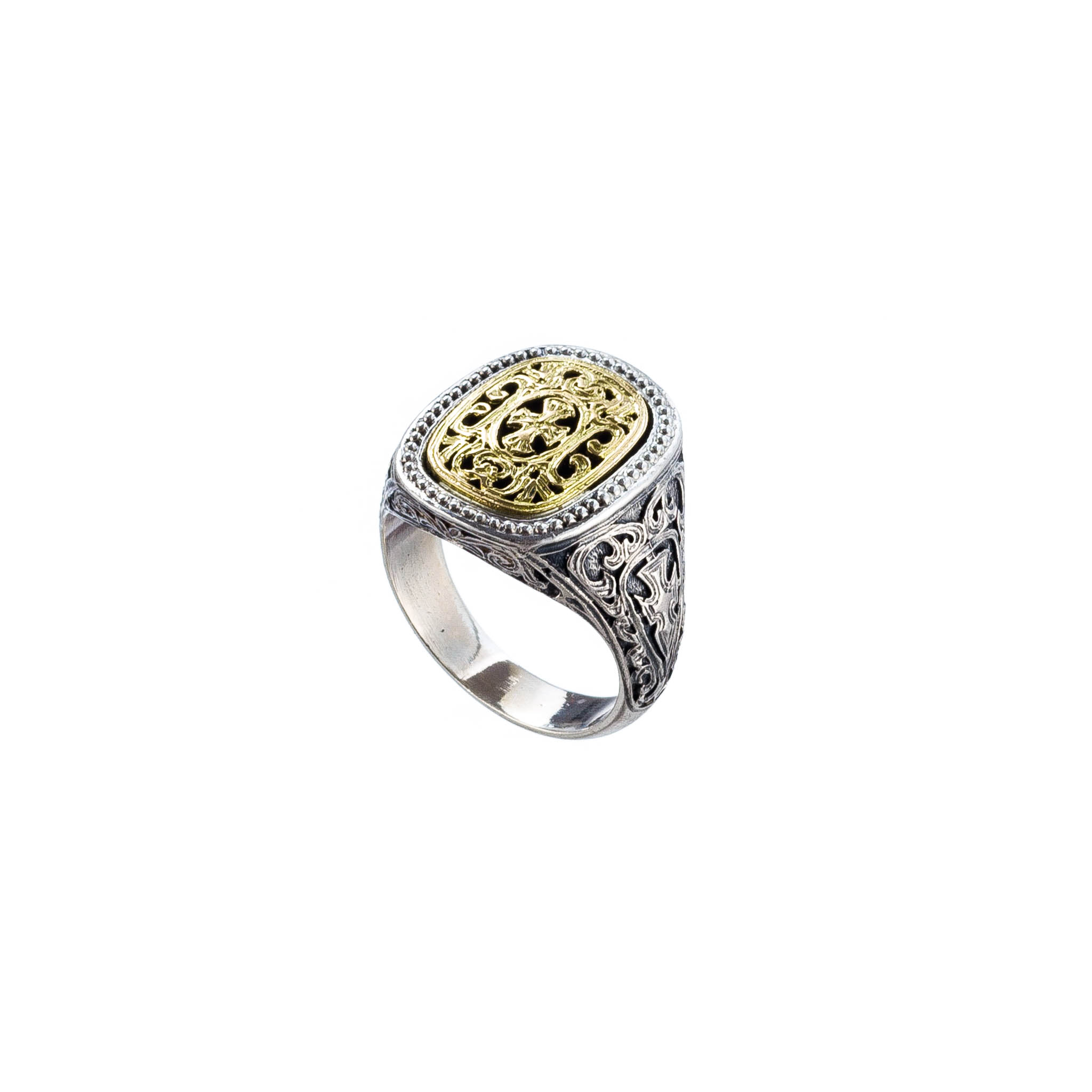Greek Jewelry, Filigree Byzantine Ring for Men’s 18k Yellow Gold and Sterling Silver 925