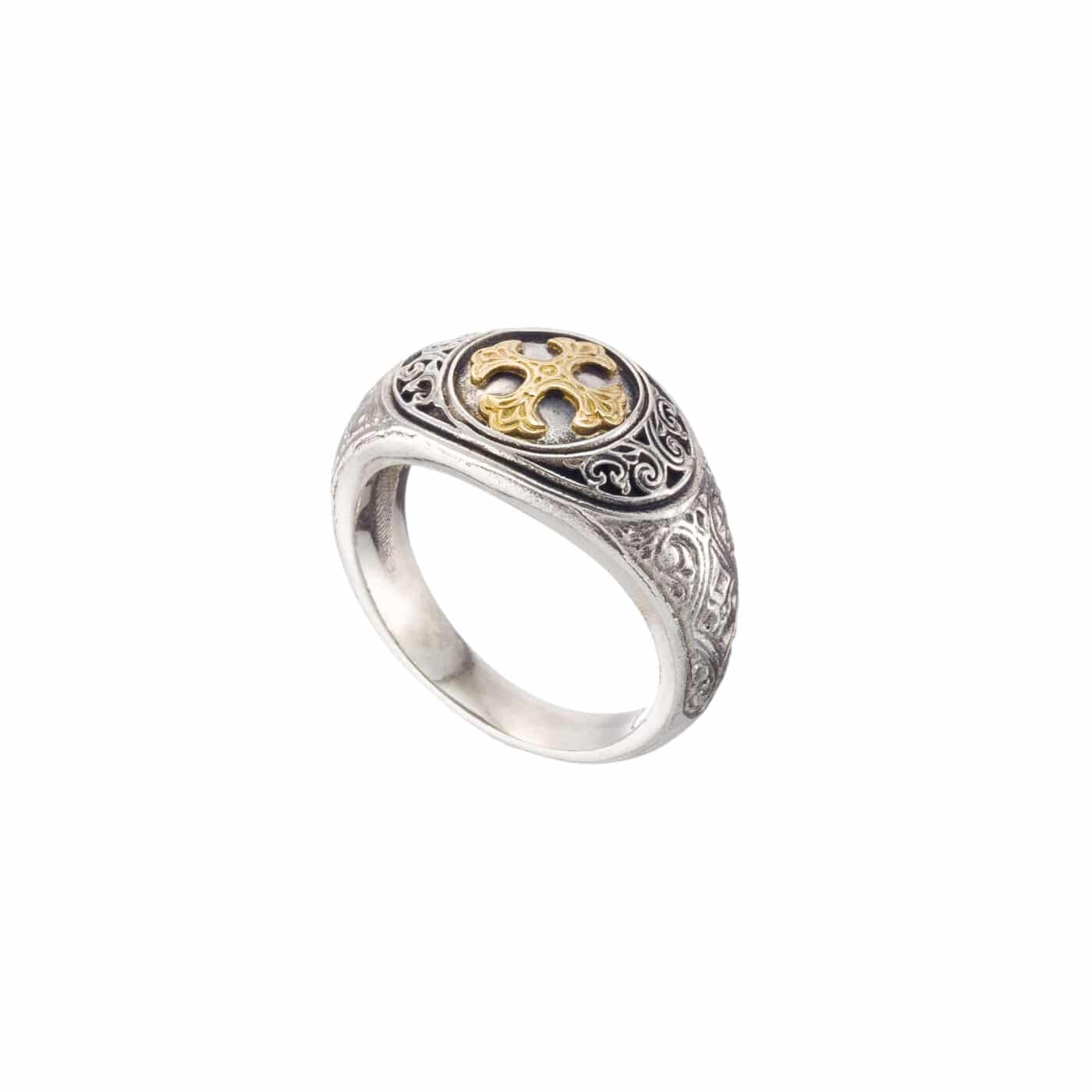 Greek Jewelry, Maltese cross oval for men’s band ring 18k yellow gold and sterling silver
