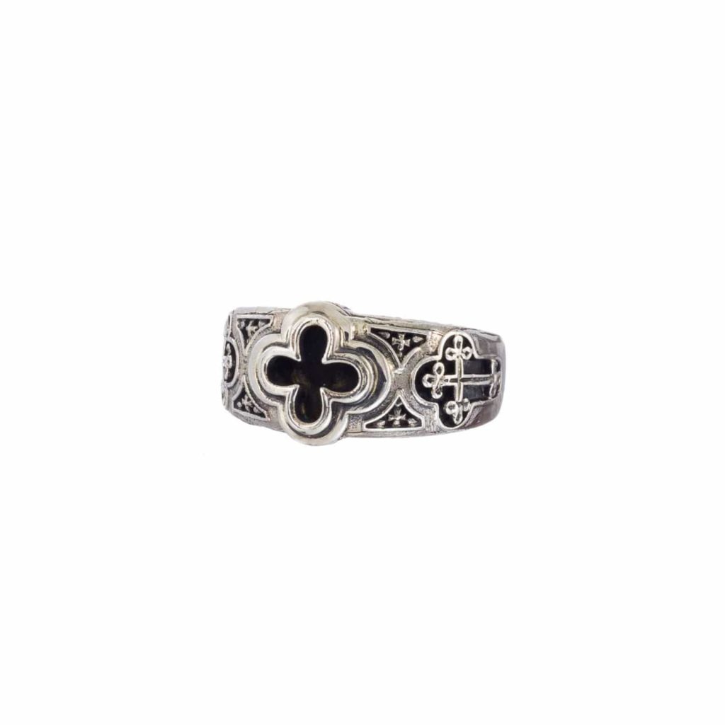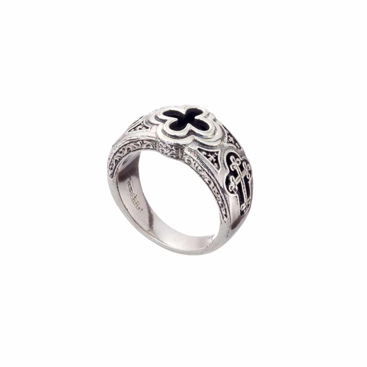 Greek Jewelry, Triple Cross for Men’s Band Byzantine Ring in Sterling Silver 925