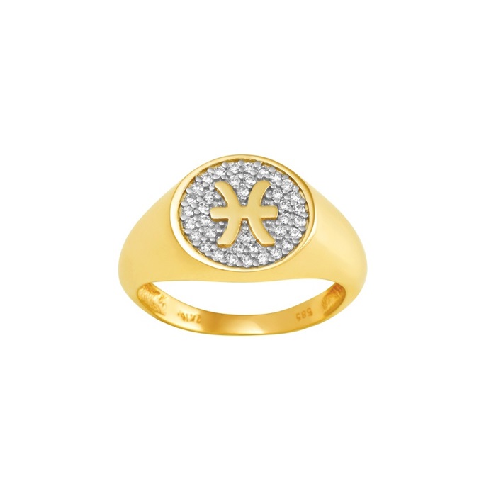 Greek Jewelry, Astrology Jewelry 14k Gold Zodiac sign Band pisces Chevalier Men’s Ring