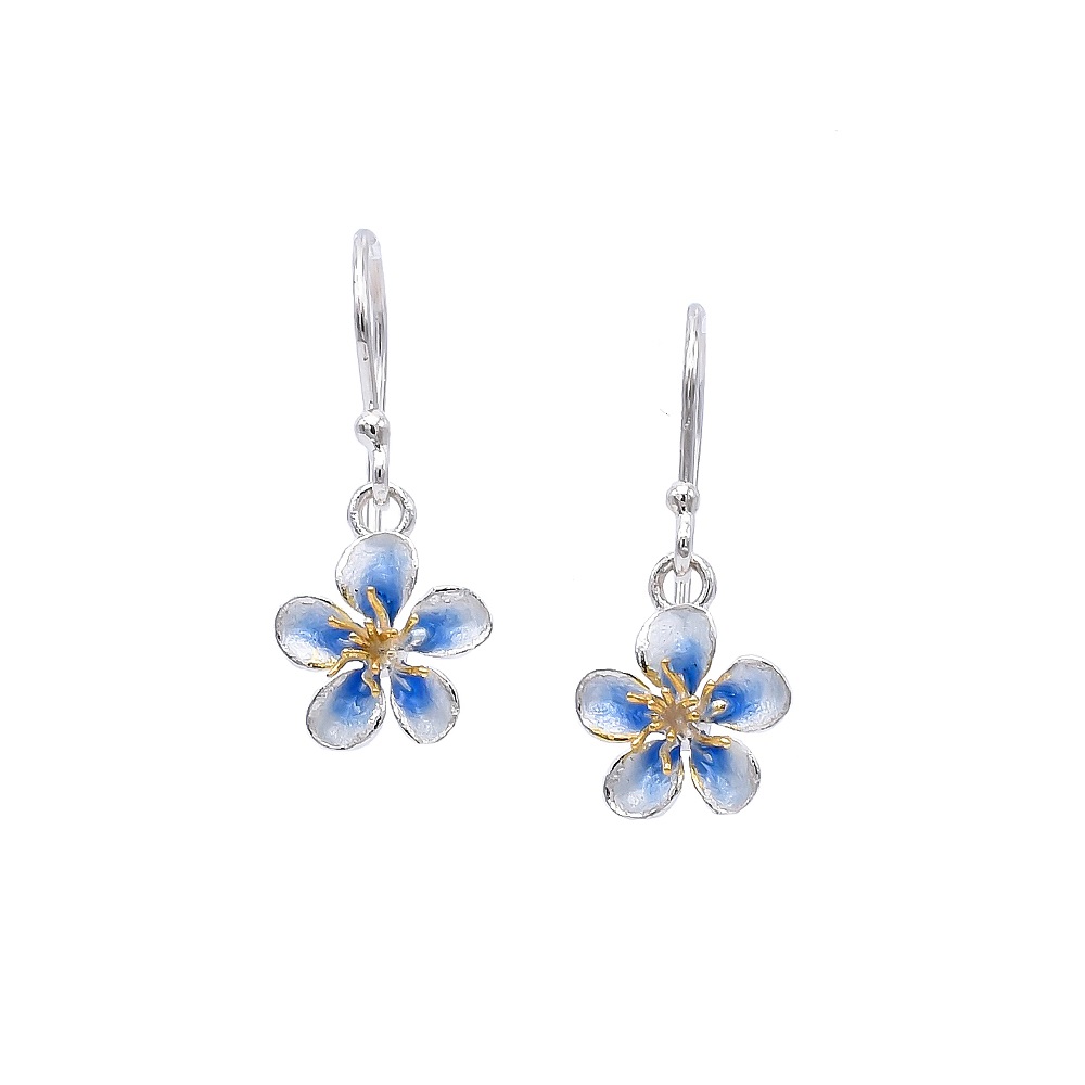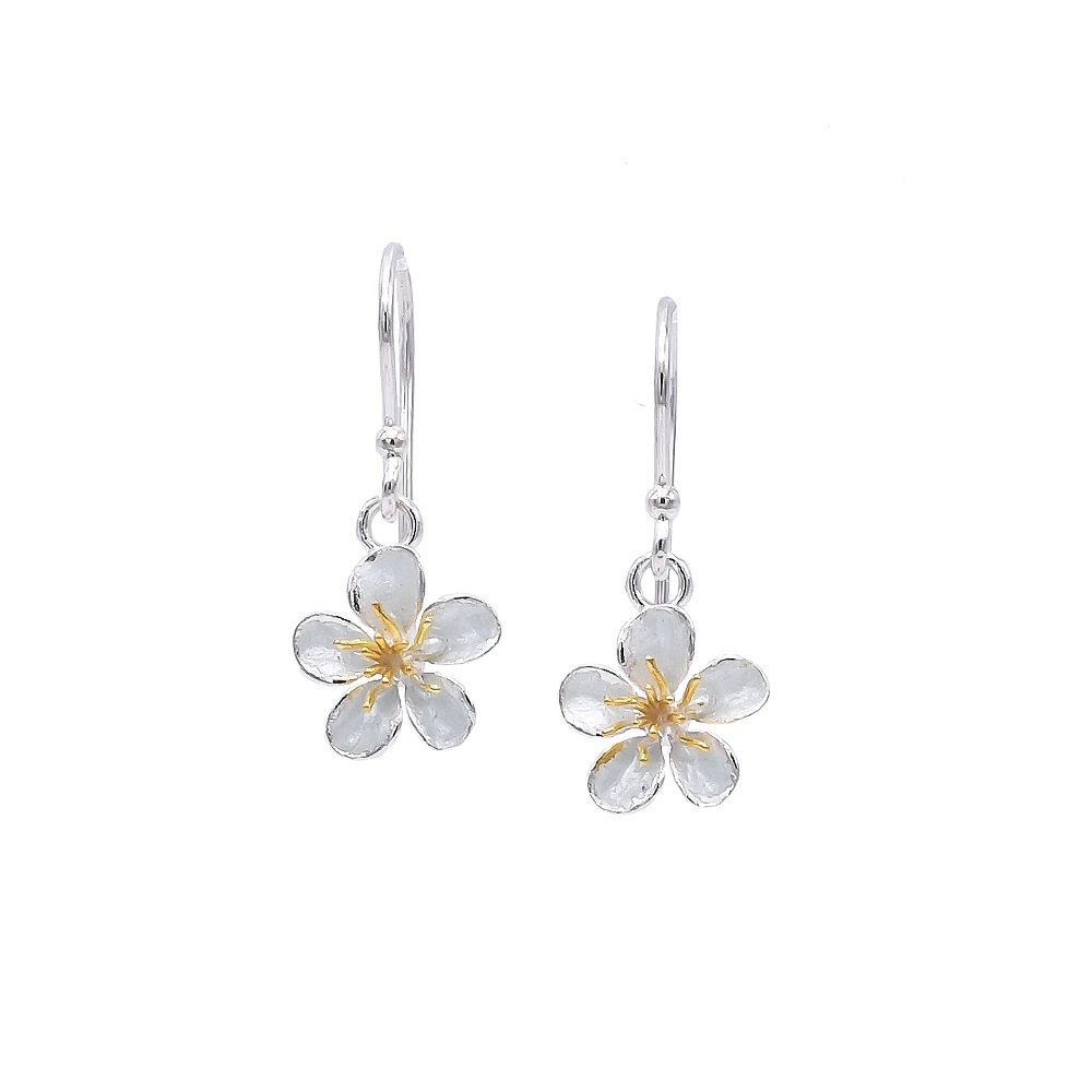 Bridal Sakura Flower Earrings Made Out of Silver and Enamel