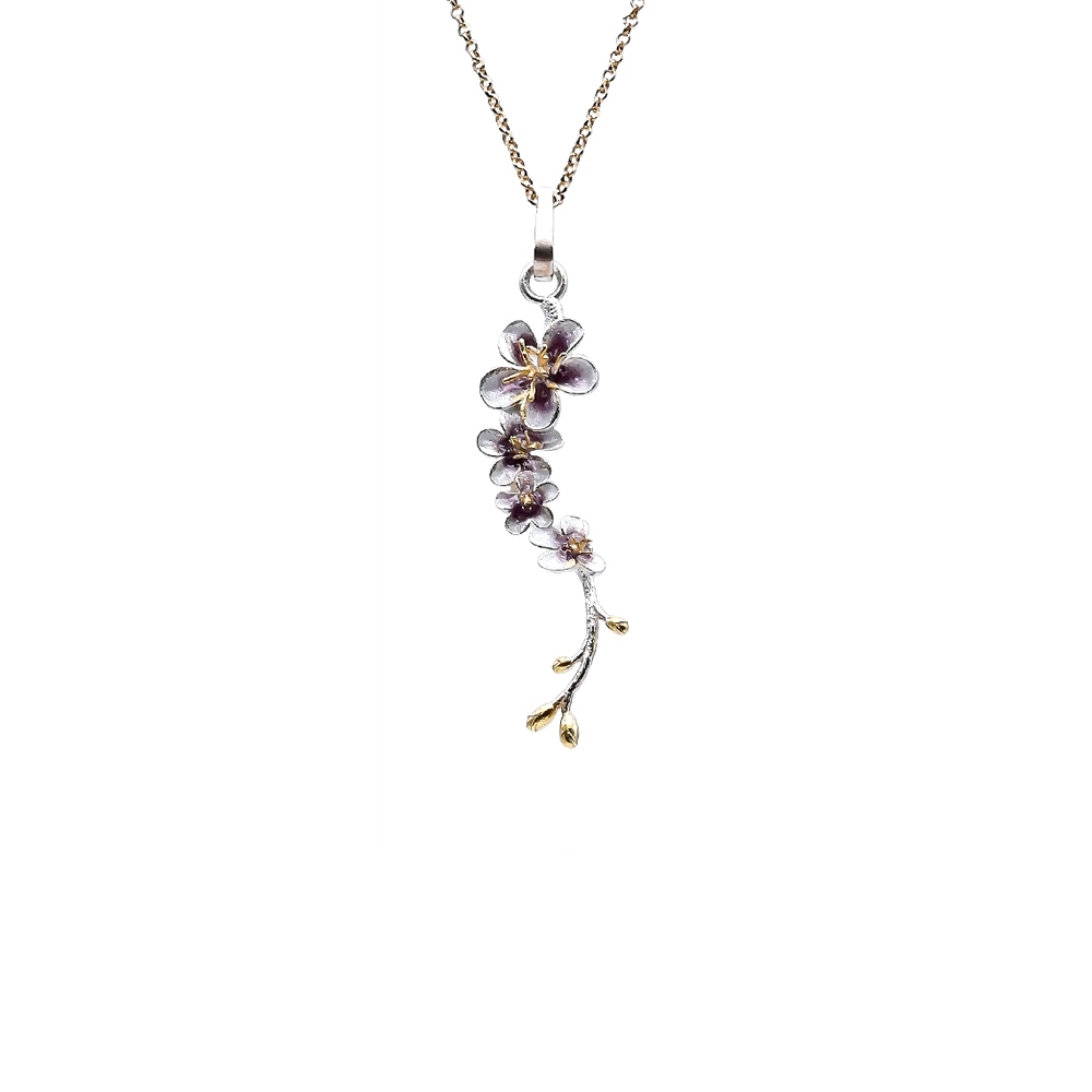 Silver Plum Blossom Pendant with Pink Enamel and Gold Plated Stamens
