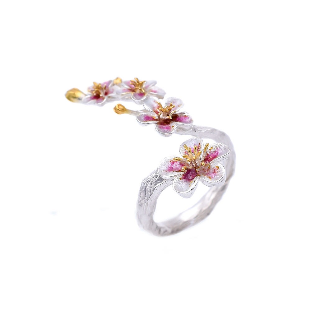 Greek Jewelry, Almond Blossom Statement Ring arorns your hand with the freshness of spring