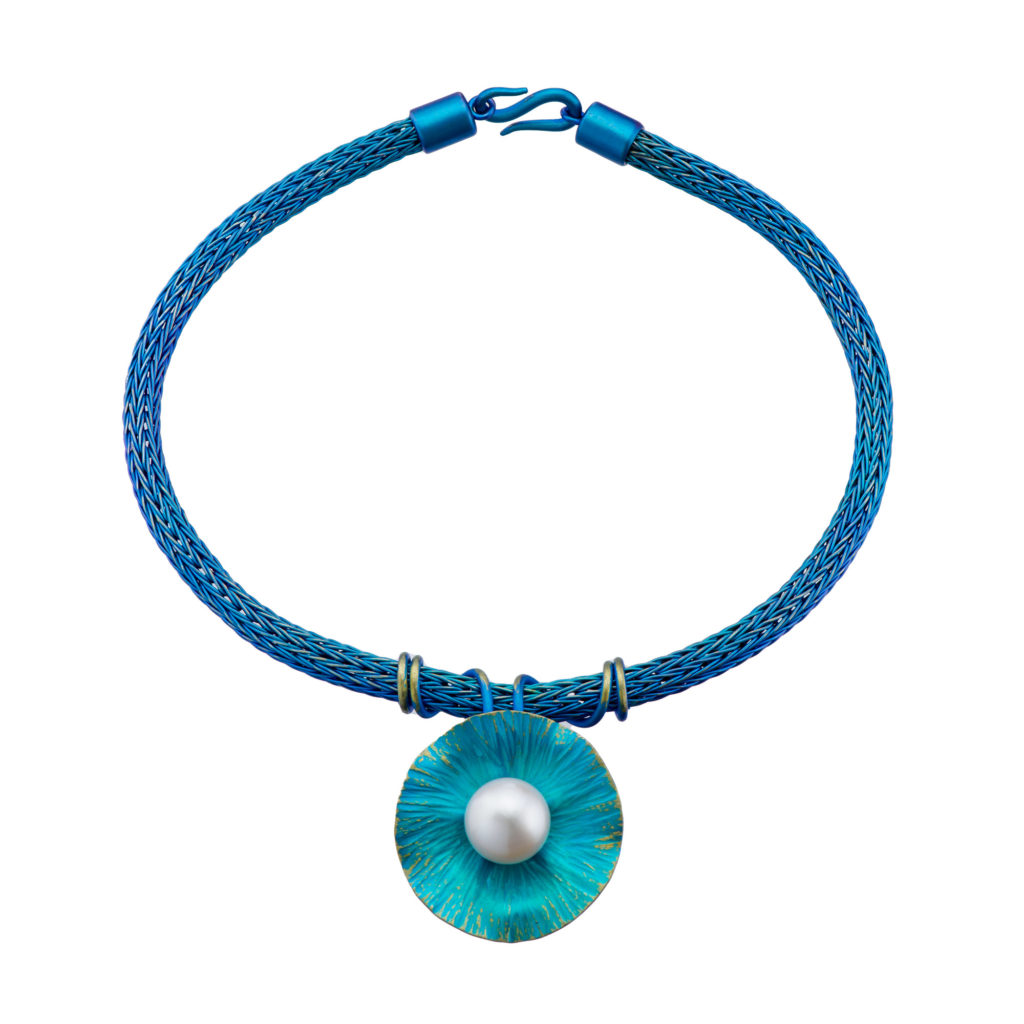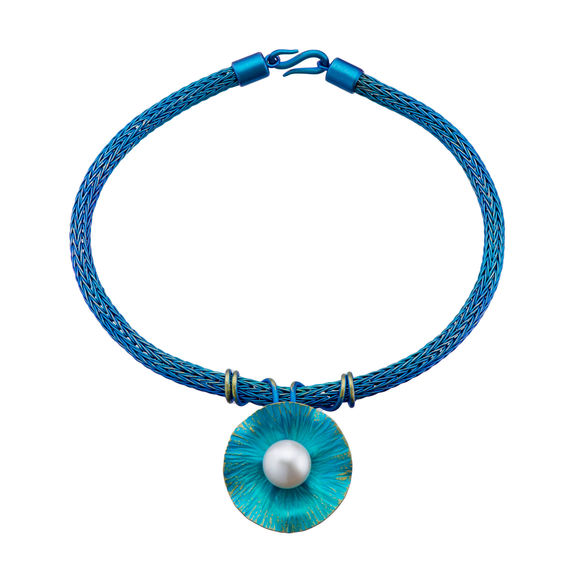 Necklace Water Lily in Titanium and Freshwater Pearls