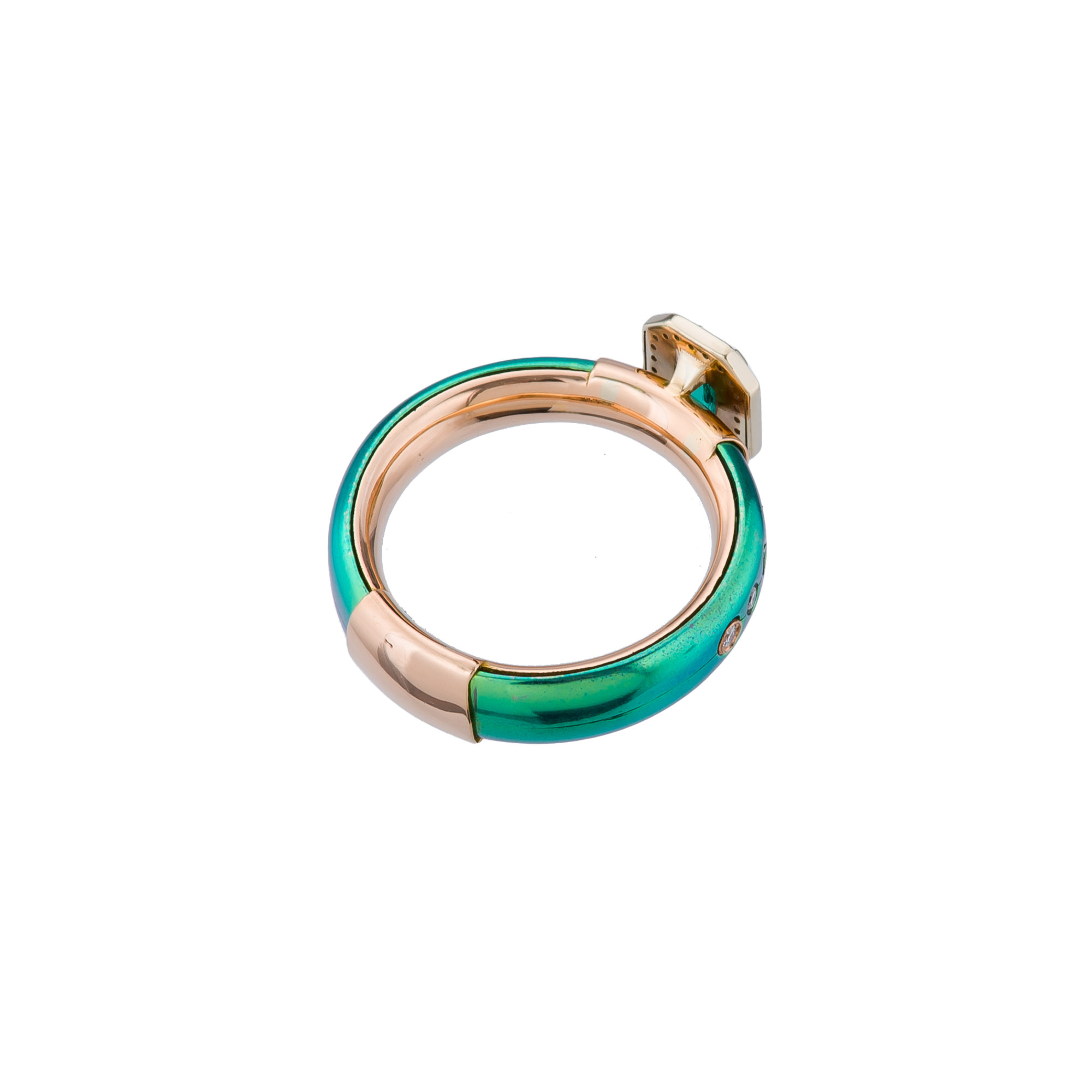 Green Titanium and k18 Pink Gold Ring with Emerald and Diamonds