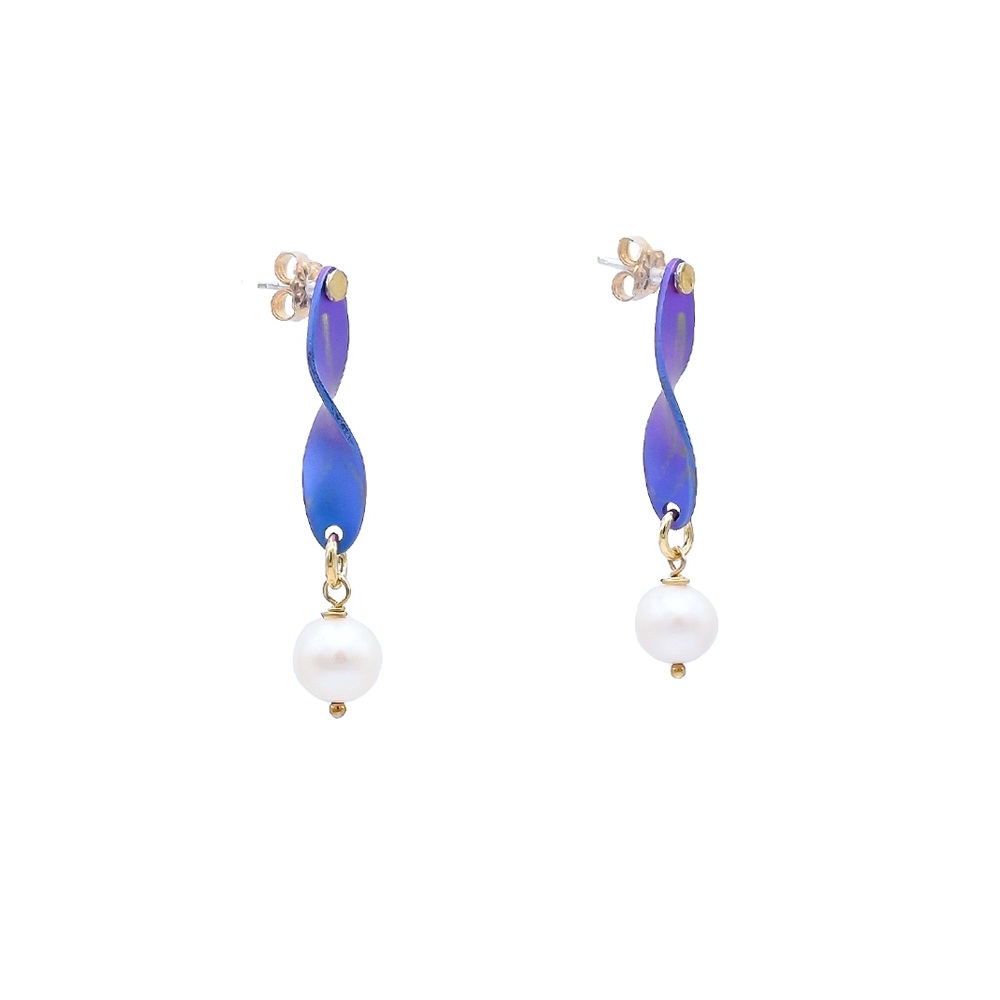 Stud Anodized Titanium Twisted Stud Earrings with Pearl