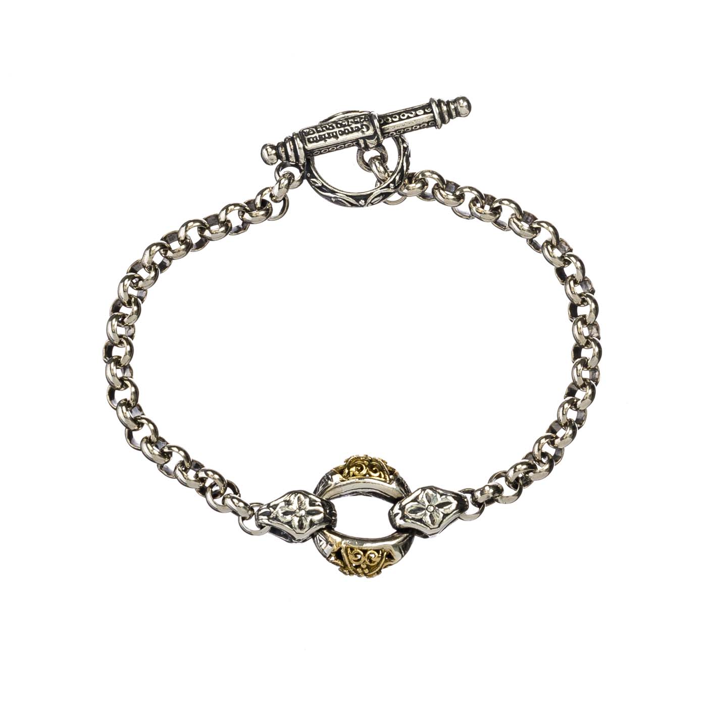 Byzantine Circle Link Chain Bracelet in Sterling Silver and 18k Gold