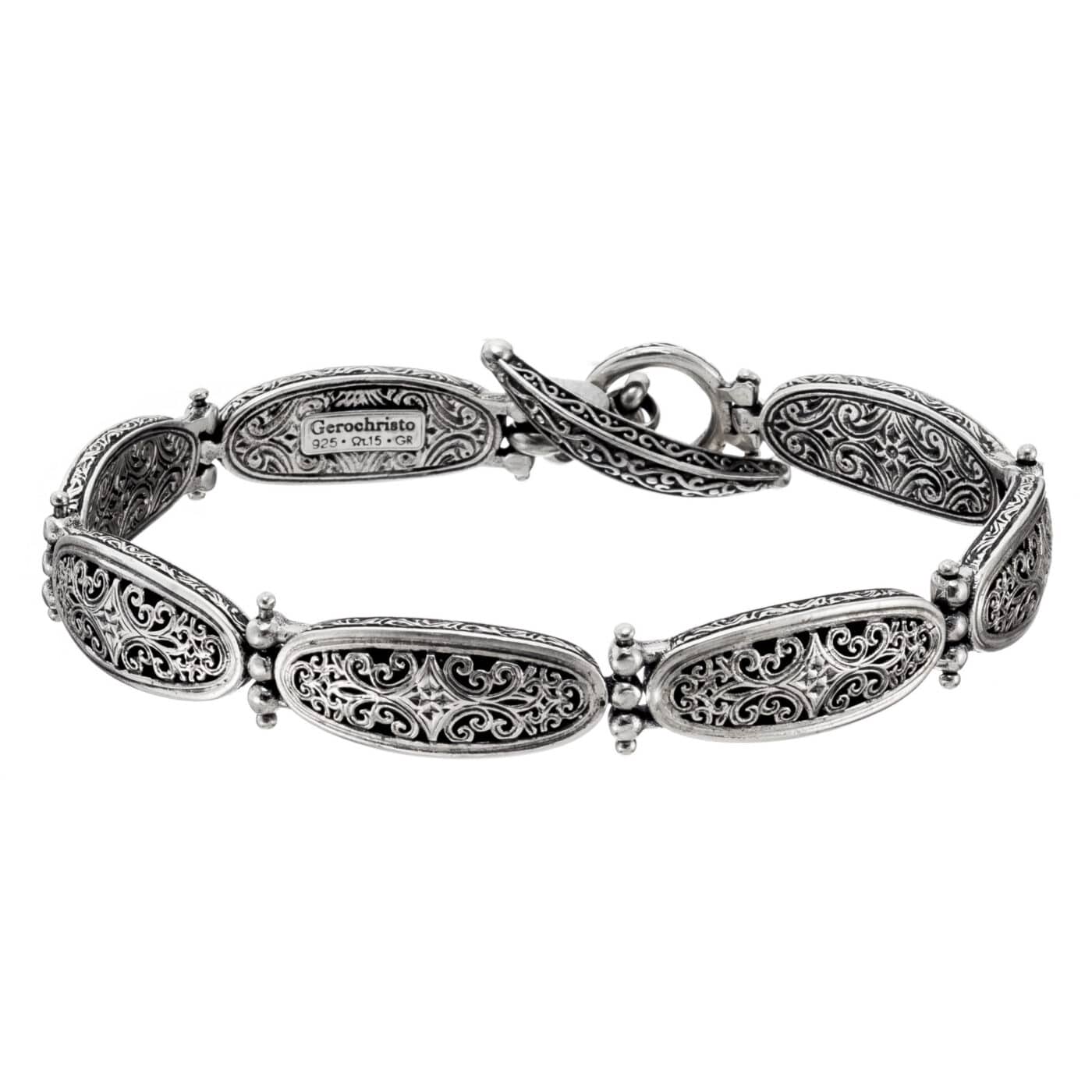 Byzantine Filigree Oval Link Bracelet in Sterling Silver 925