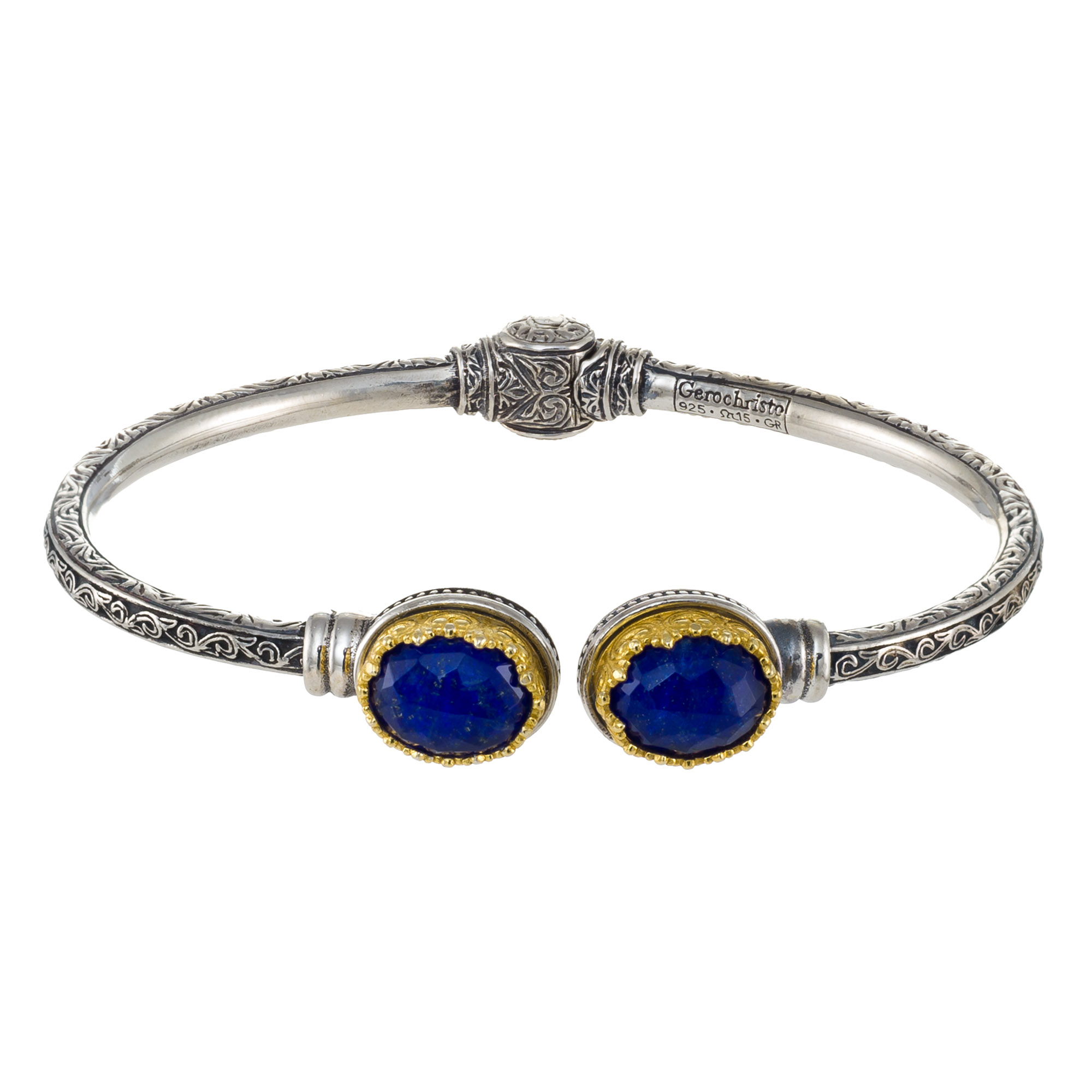 Greek Jewelry, Gerochristo Cuff Bracelet for Women in Sterling Silver 925 with Gold Plated parts