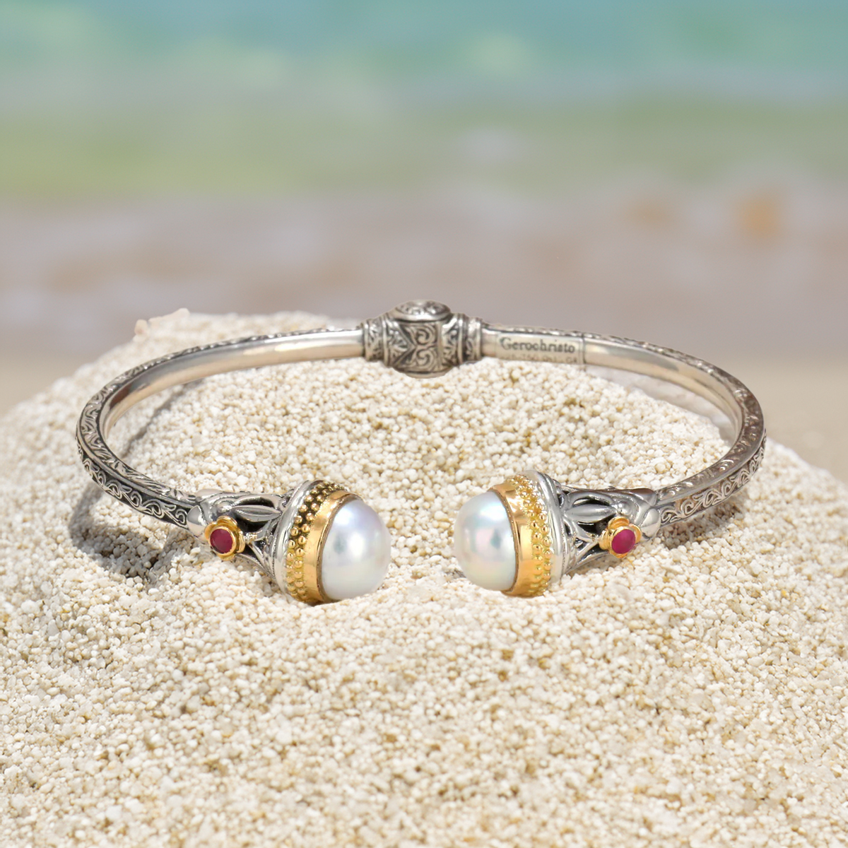 Pearls Cuff Bracelet in 18k Yellow Gold and Silver 925