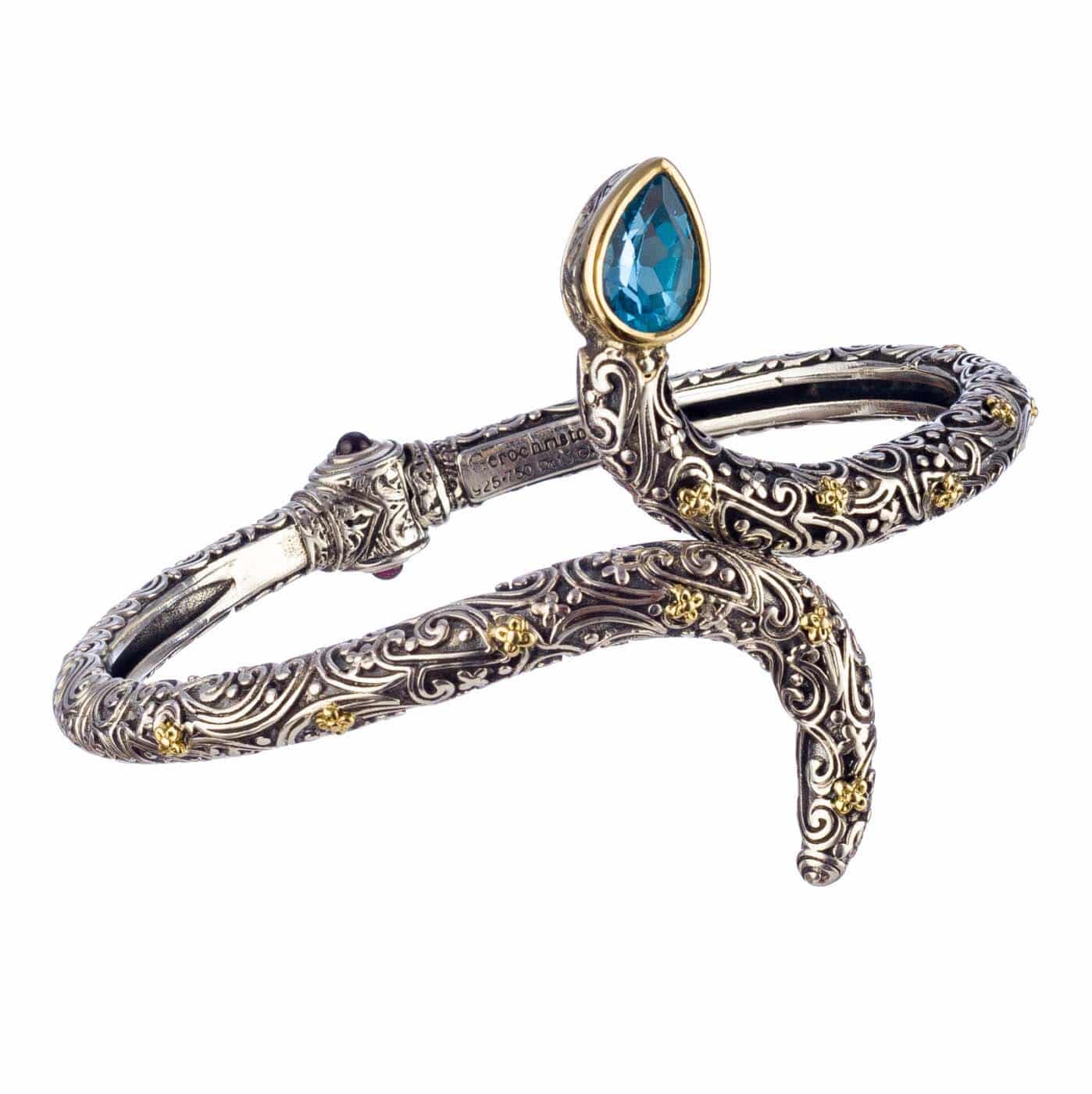 Snake Open Bracelet Flowers in 18k Yellow Gold and Silver 925