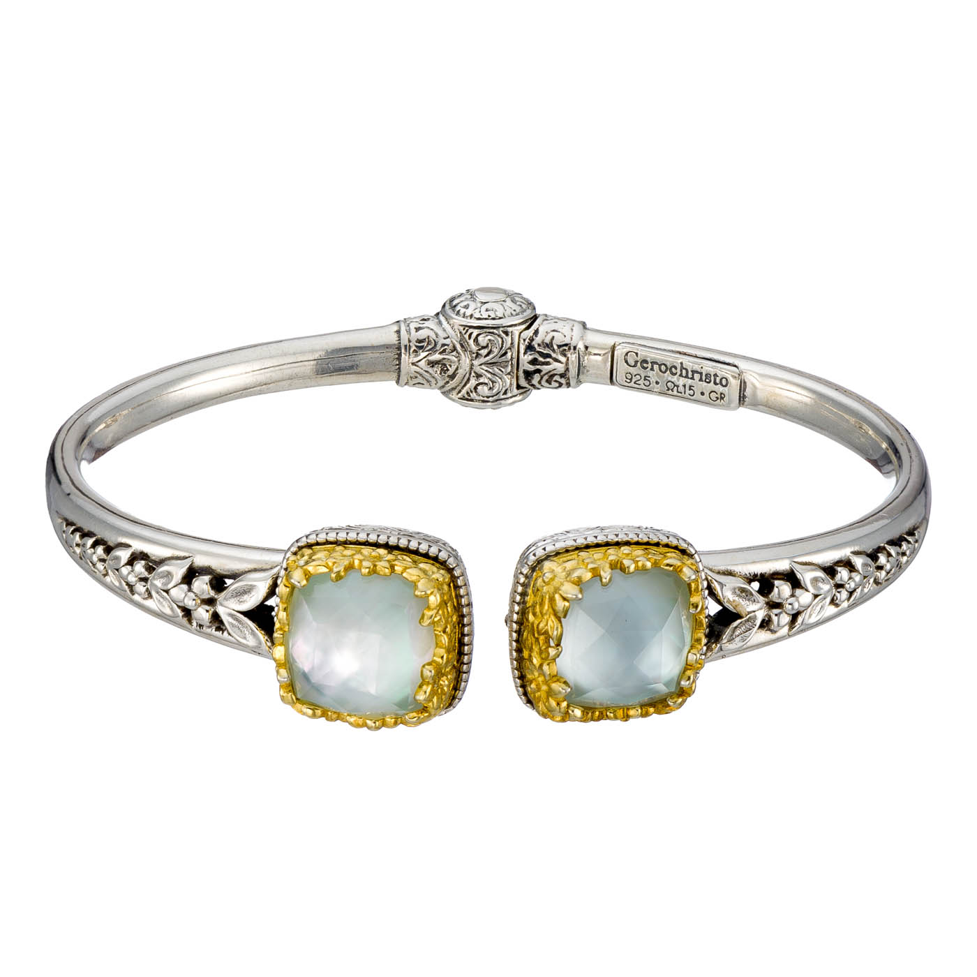 Greek Jewelry, Gerochristo Cuff Bracelet for Women in Sterling Silver 925 with Gold Plated parts