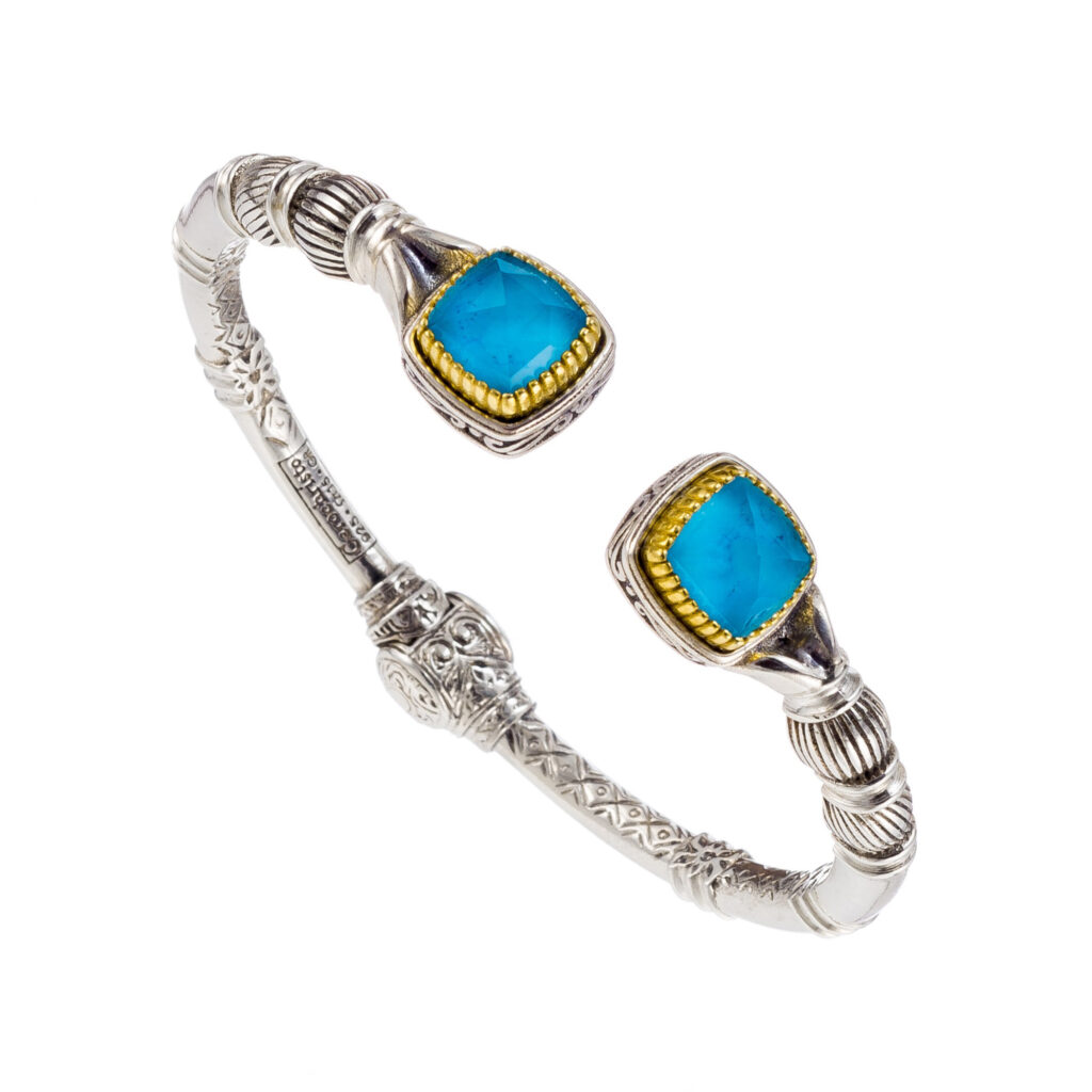 Greek Jewelry, Gerochristo Cuff Bracelet for Women in Sterling Silver 925 with Gold Plated parts