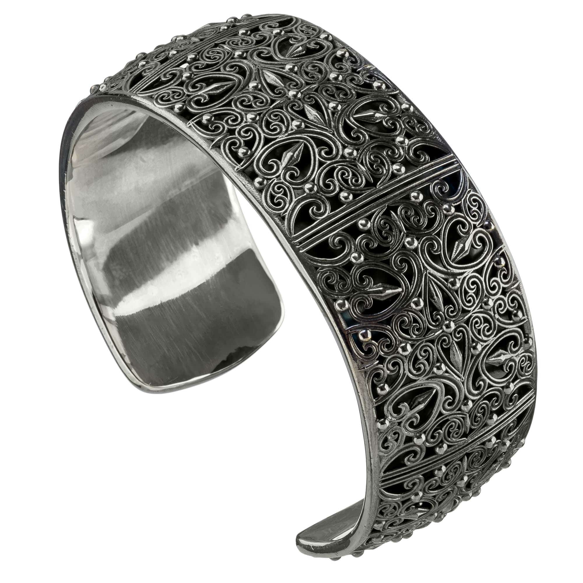 Greek Jewelry, Cuff Filigree Pattern Handmade 925 Sterling Silver Bracelet a great gift elegant