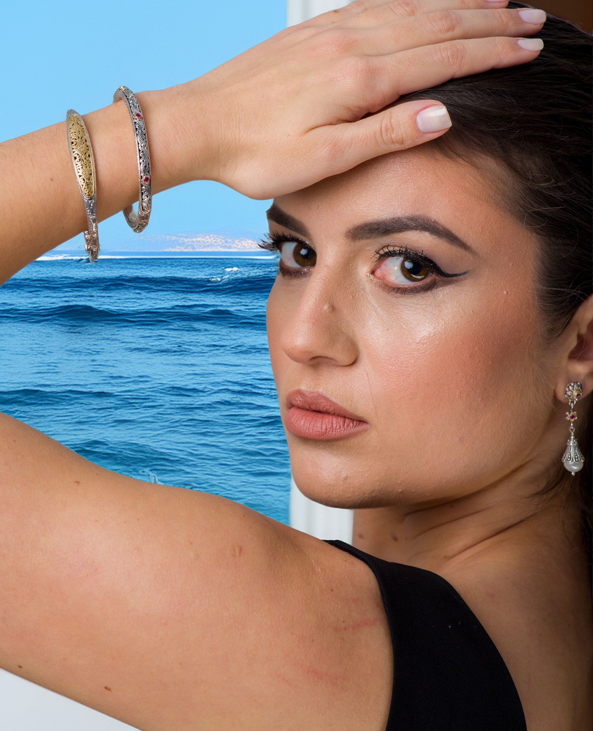 Greek Jewelry, Byzantine bracelet yellow solid Gold k18 and Sterling Silver 925