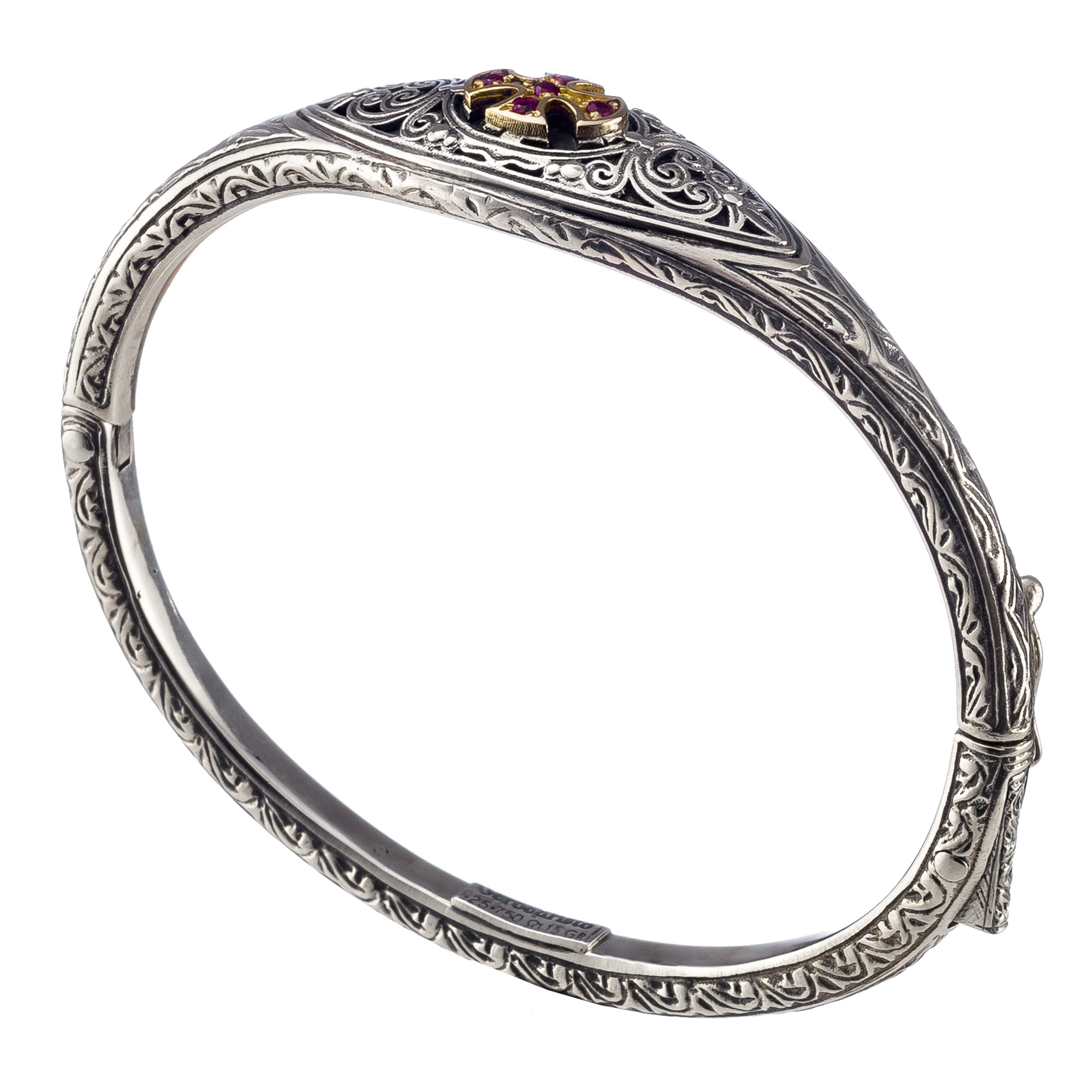 Greek Jewelry, Byzantine Bangle Cross Bracelet yellow solid Gold k18 and Sterling Silver 925