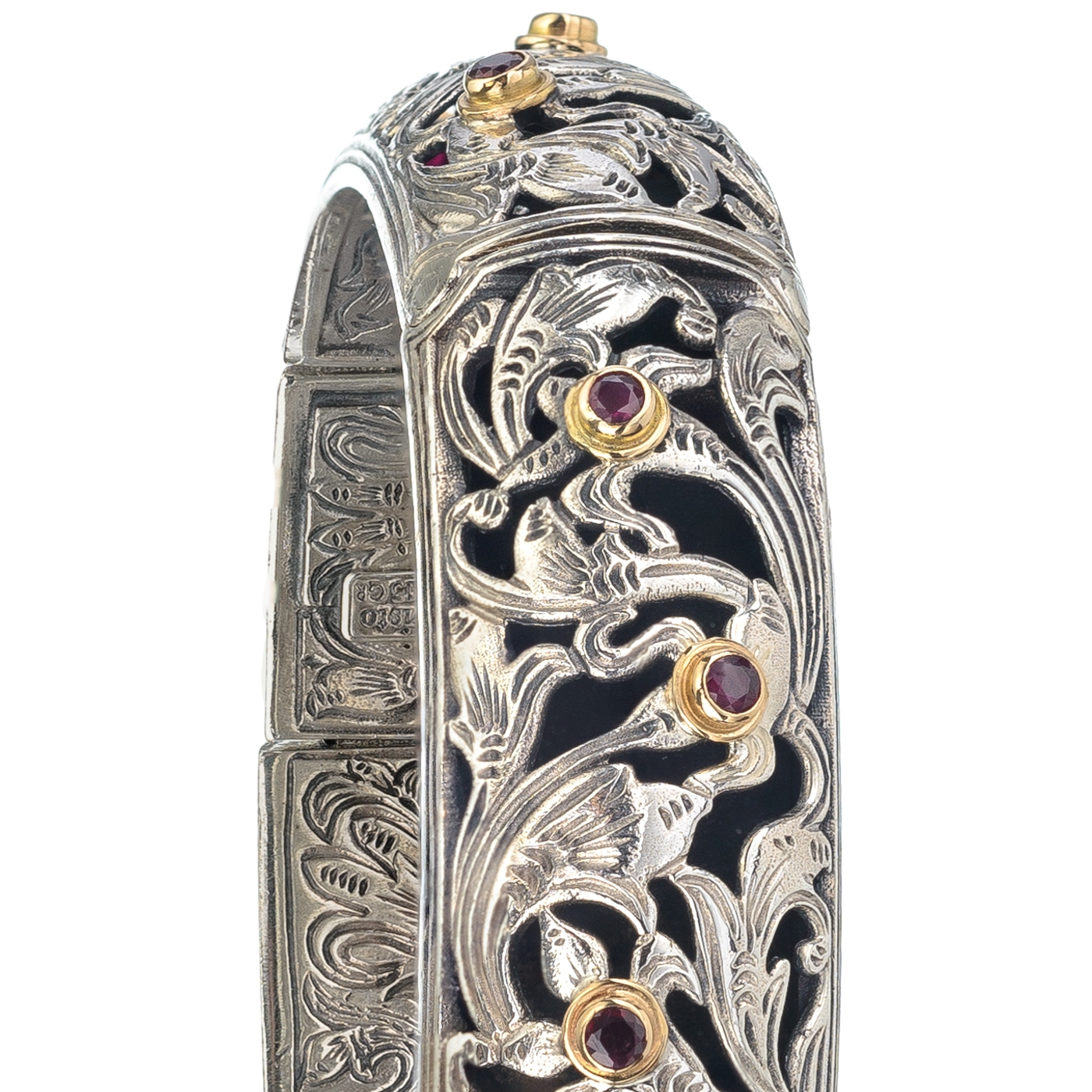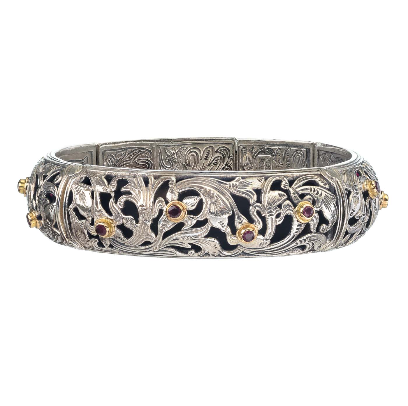 Greek Jewelry, Garden Flower Byzantine Bracelet Yellow Gold k18 and Sterling Silver 925