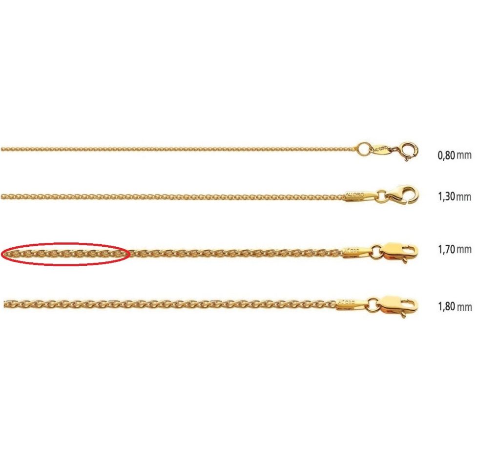 Spiga chain is a highly popular choice for jeweler making, with or without a pendant. Small figure of eight links that gives the chain pound, creating a stunning chain for men and women.