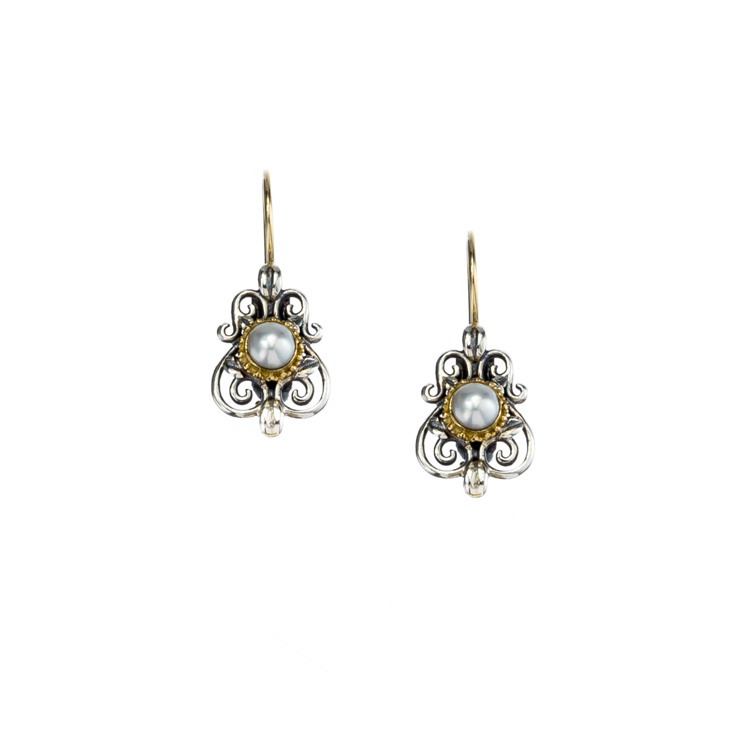 Greek Jewelry, Byzantine Earrings for Lady’s pearls Yellow Gold k18 and Sterling Silver 925