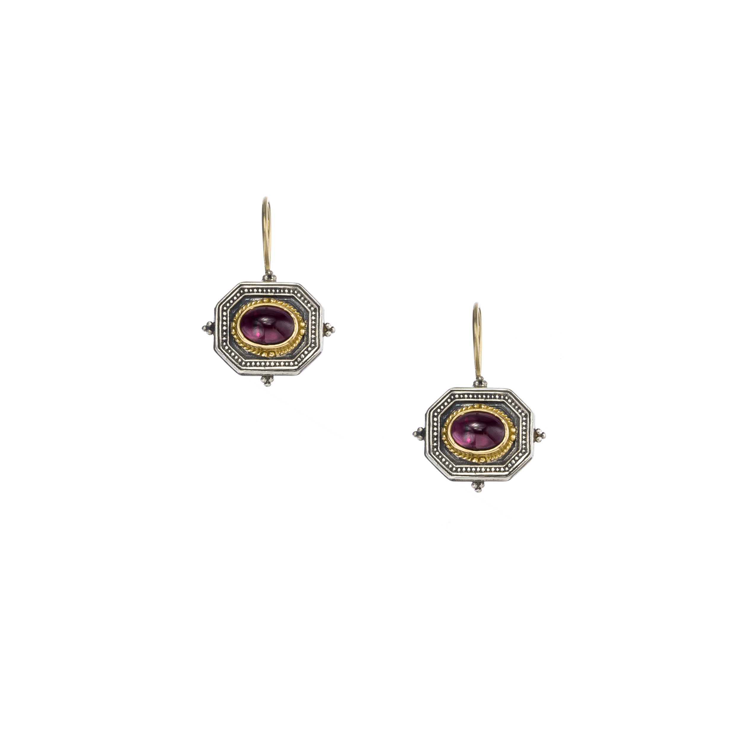Greek Jewelry, Byzantine Handmade Earrings garnet for Ladies Yellow Gold k18 and Silver 925