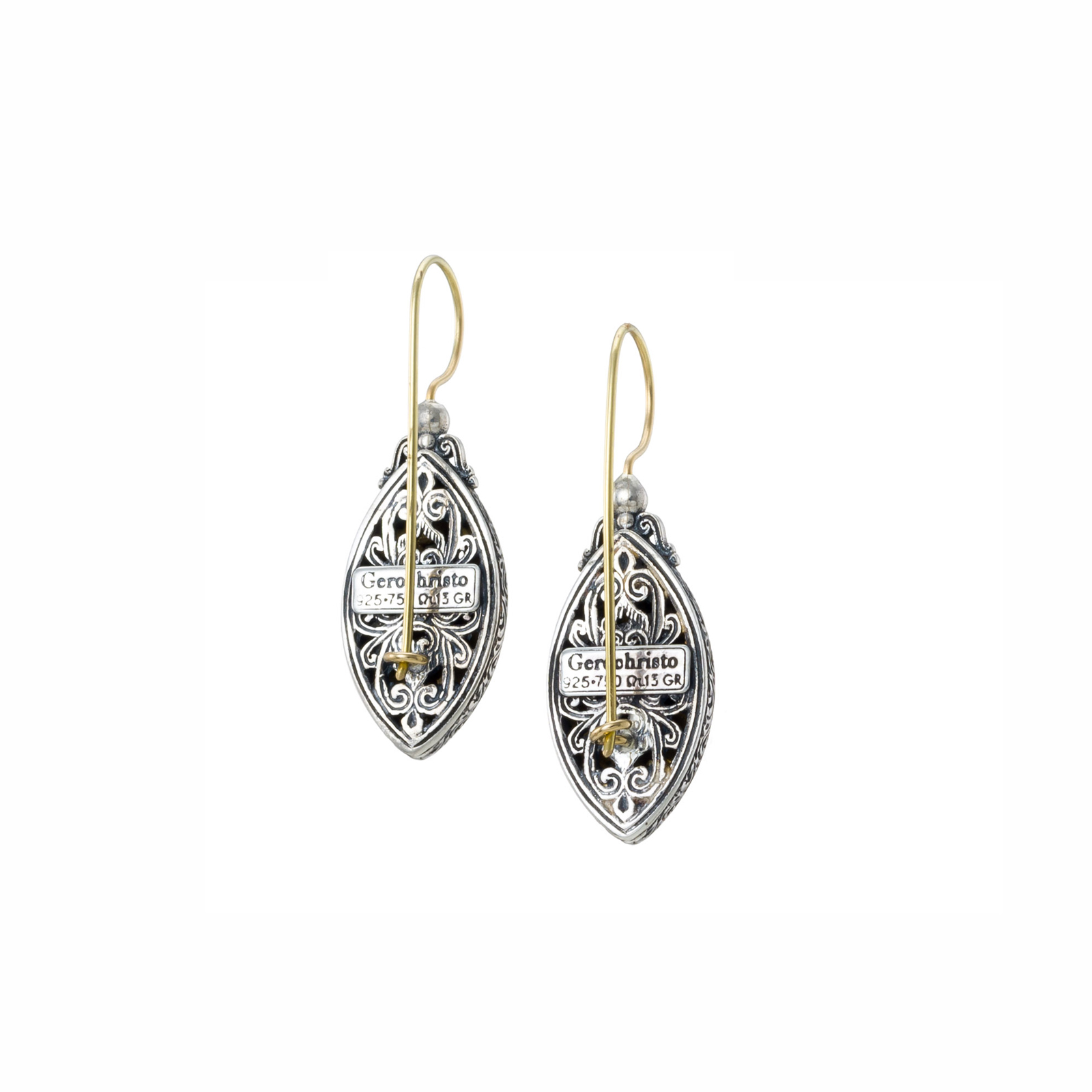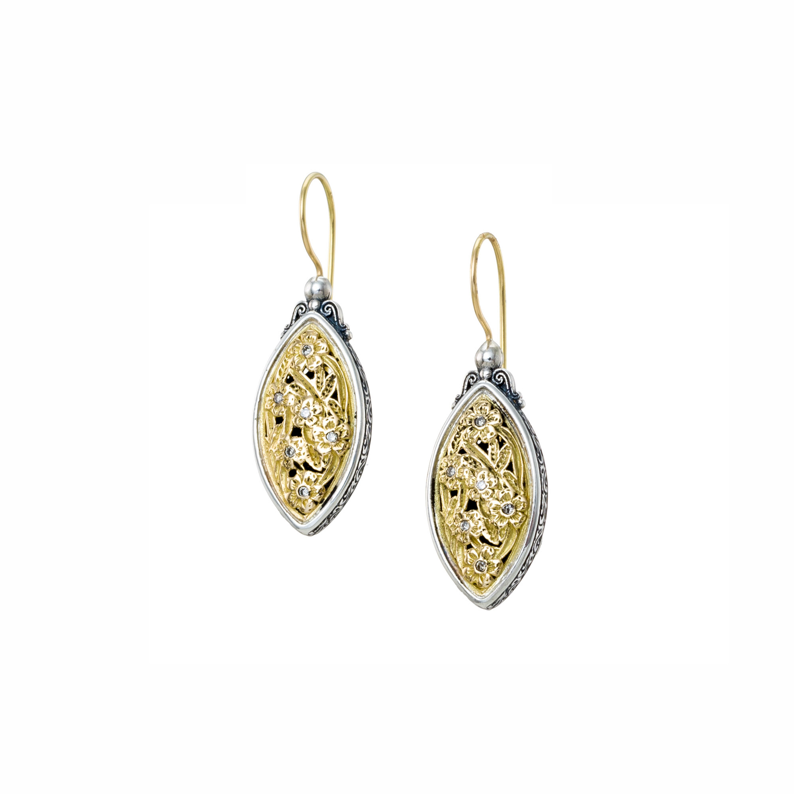 Greek Jewelry, Diamonds Flower Earrings Beautiful for Women’s 18k Yellow Gold and Silver