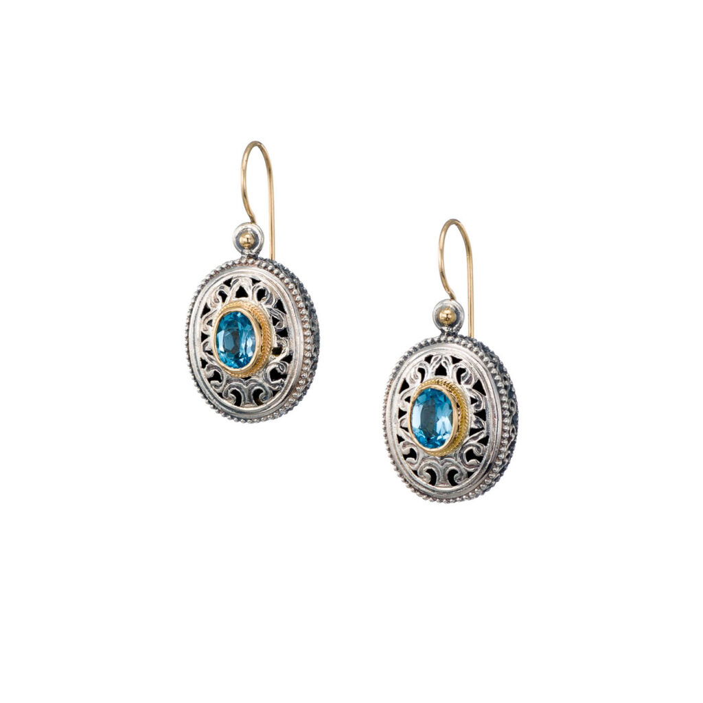 Greek Jewelry, Filigree oval Handmade Earrings Peridot for women’s Yellow Gold k18 and Sterling Silver 925