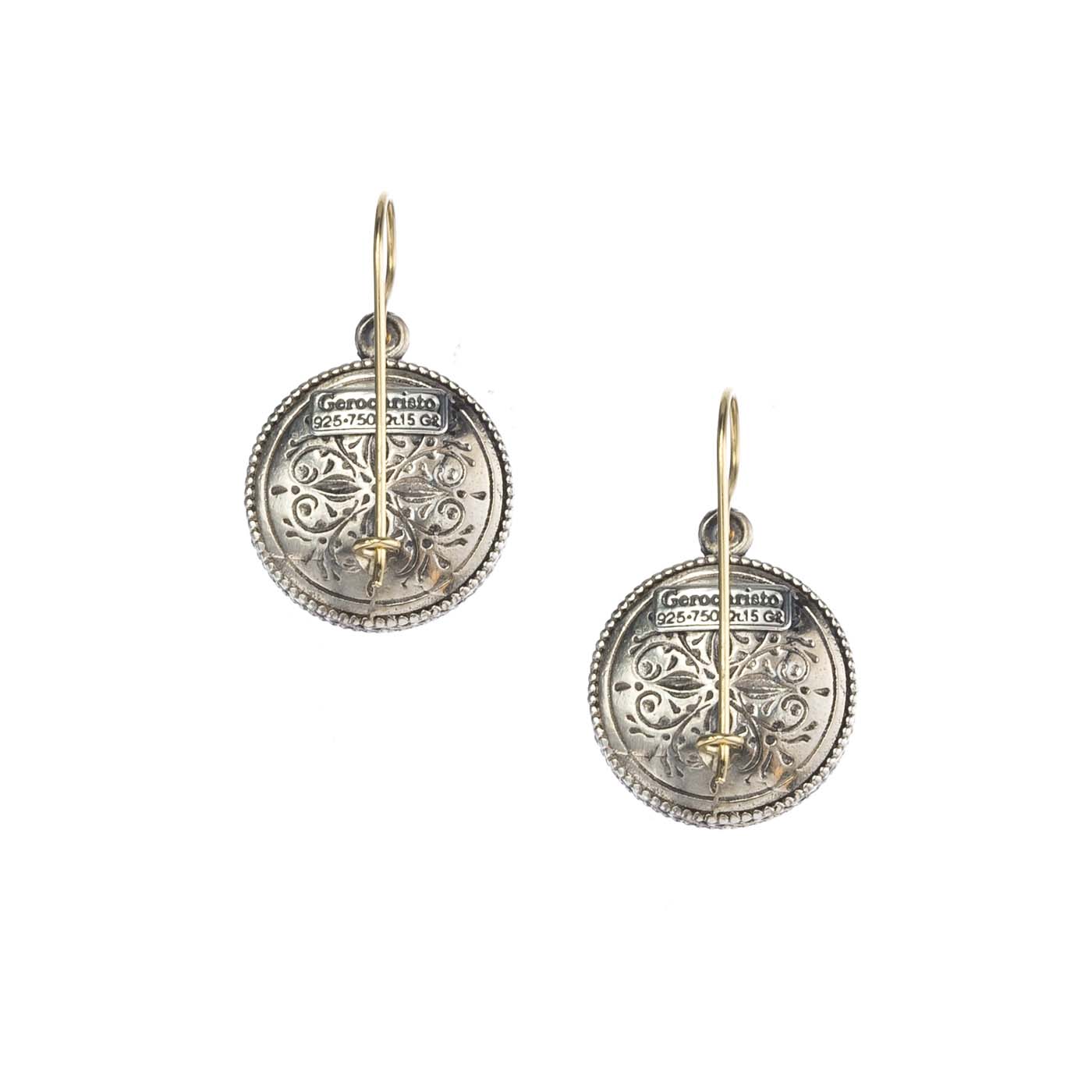 Greek Jewelry, Filigree round Handmade Earrings for women’s Yellow Gold k18 and Sterling Silver 925