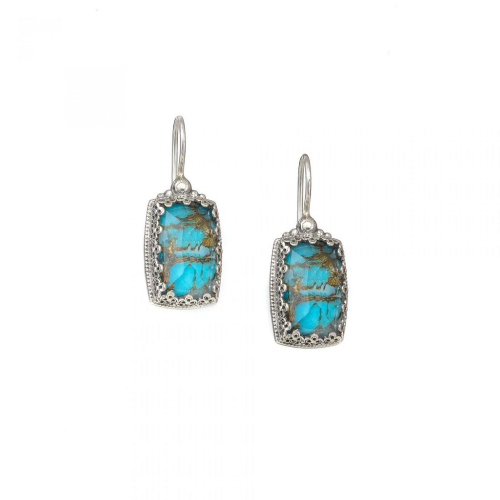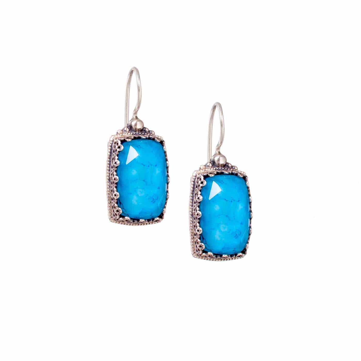 Greek Jewelry, Colors Rectangular Earrings in Sterling Silver 925 for Women’s