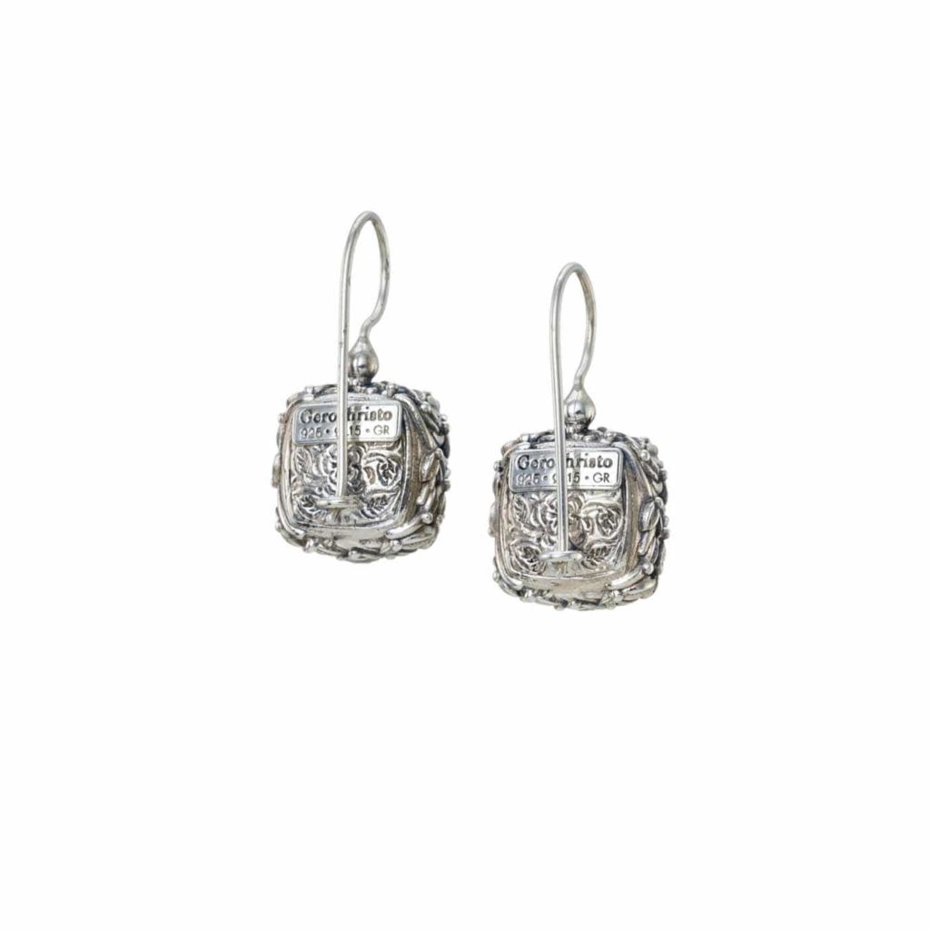 Greek Jewelry, Cyclamen Square small Earrings in Sterling Silver 925 for women’s