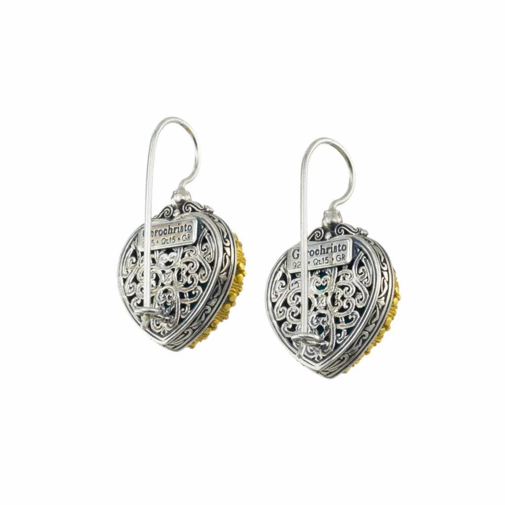 Greek Jewelry, Heart Colors Earrings Beautiful for Women’s Silver 925 with Gold plated parts