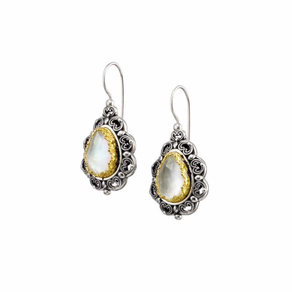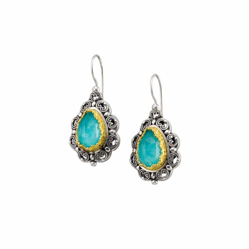 Greek Jewelry, Tear Colors Earrings in Sterling Silver with Gold plated parts for Women’s