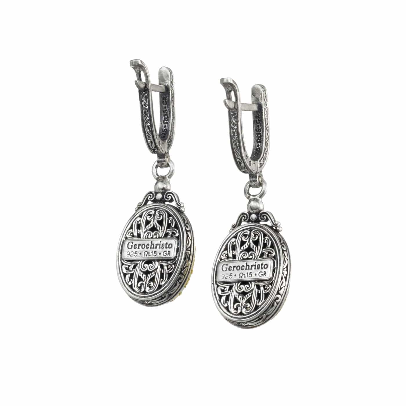 Greek Jewelry, Drop Oval earrings in Sterling Silver with Gold plated parts