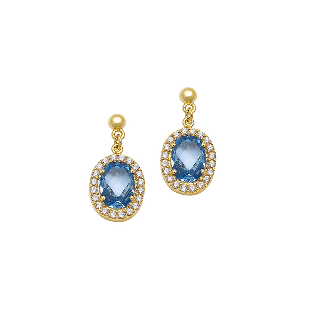 Greek Jewelry, Oval Drop Earrings Double Stones in k14 yellow Gold