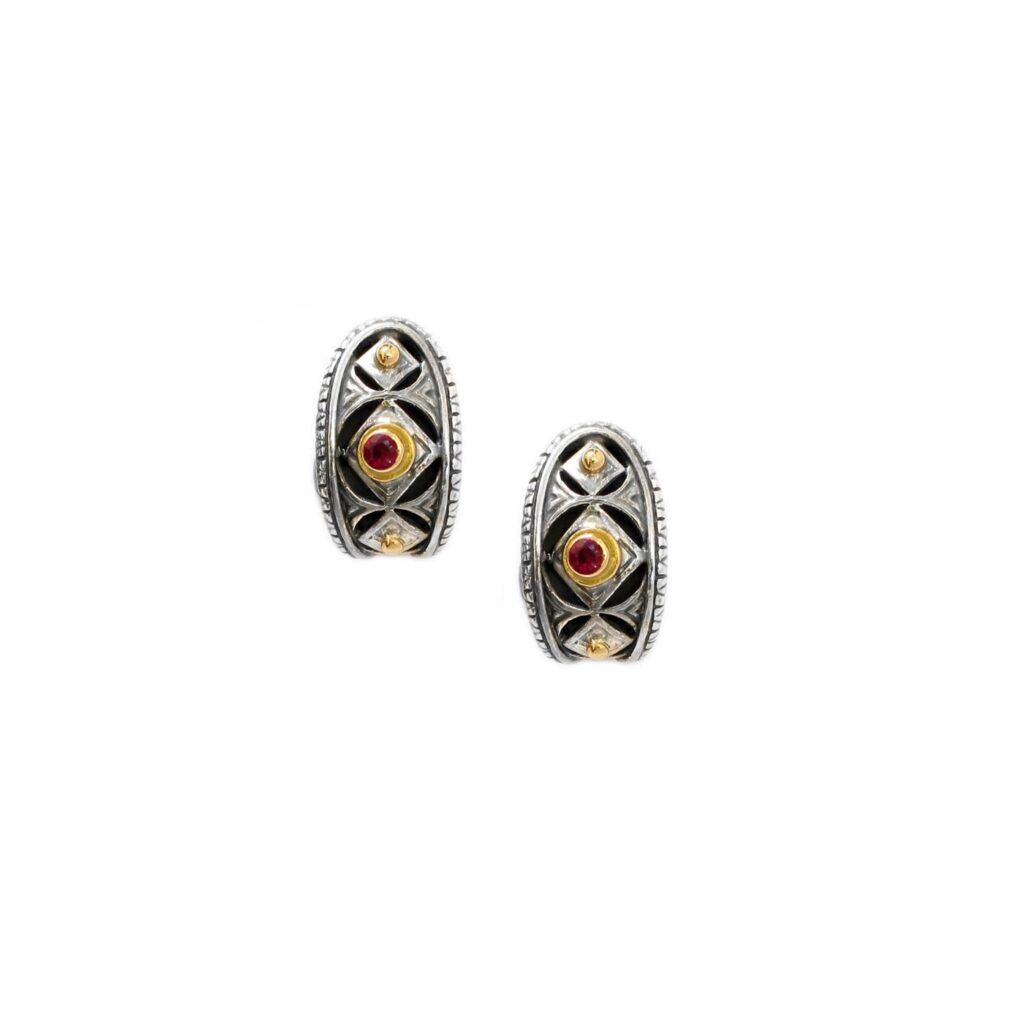 Greek Jewelry, Half Hoop Byzantine Earrings18k Yellow Gold and Sterling Silver 925
