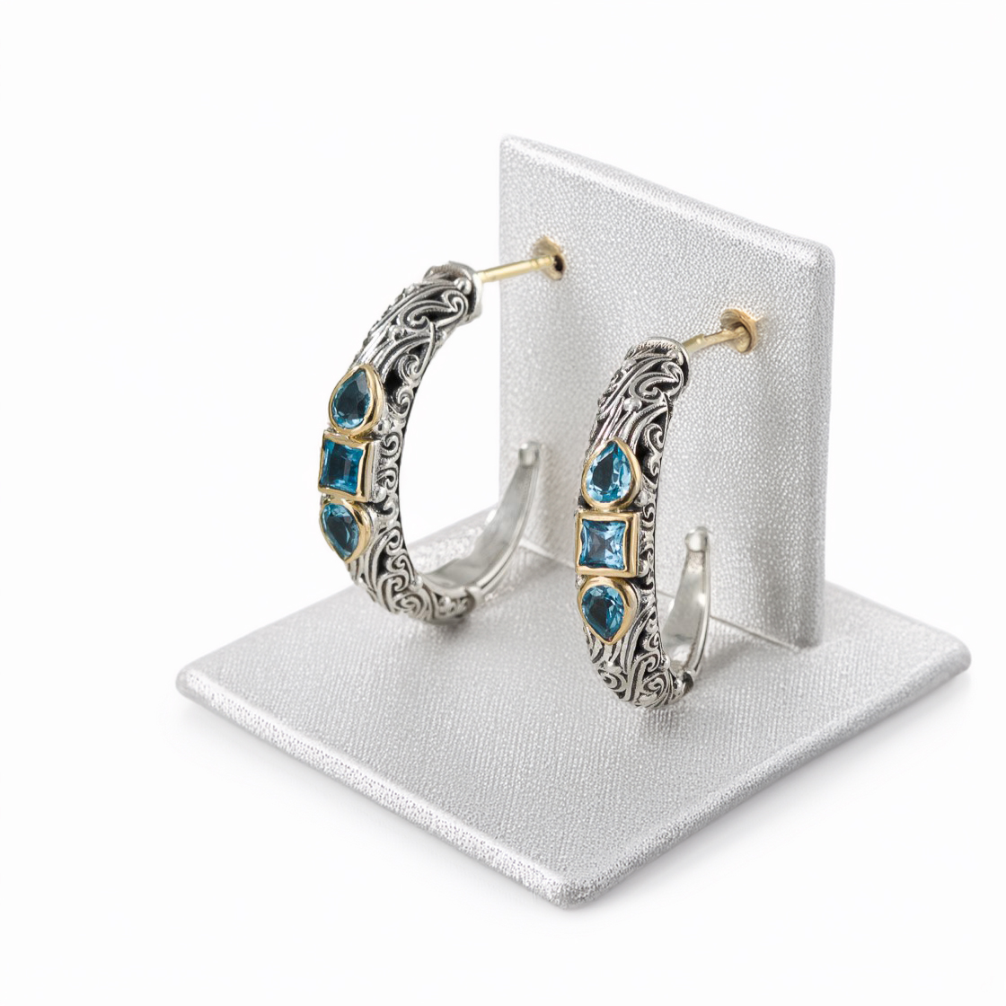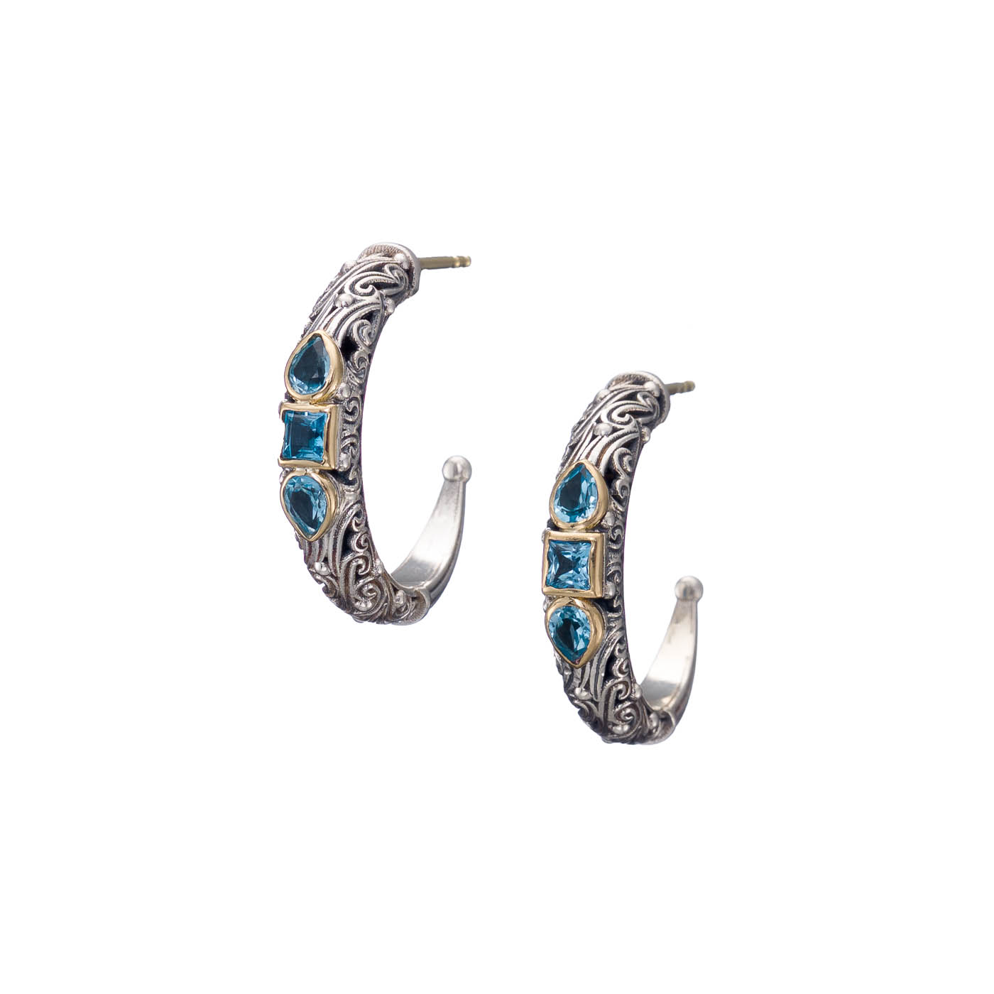 Greek Jewelry, Half Hoop Byzantine Earrings18k Yellow Gold and Sterling Silver 925
