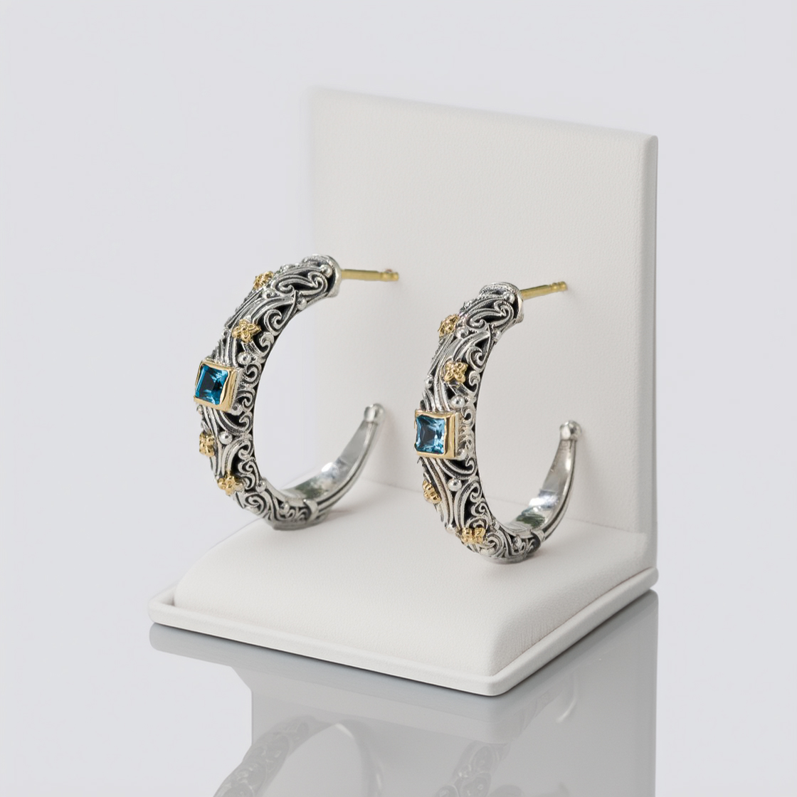 Greek Jewelry, Half Hoop Byzantine Earrings18k Yellow Gold and Sterling Silver 925