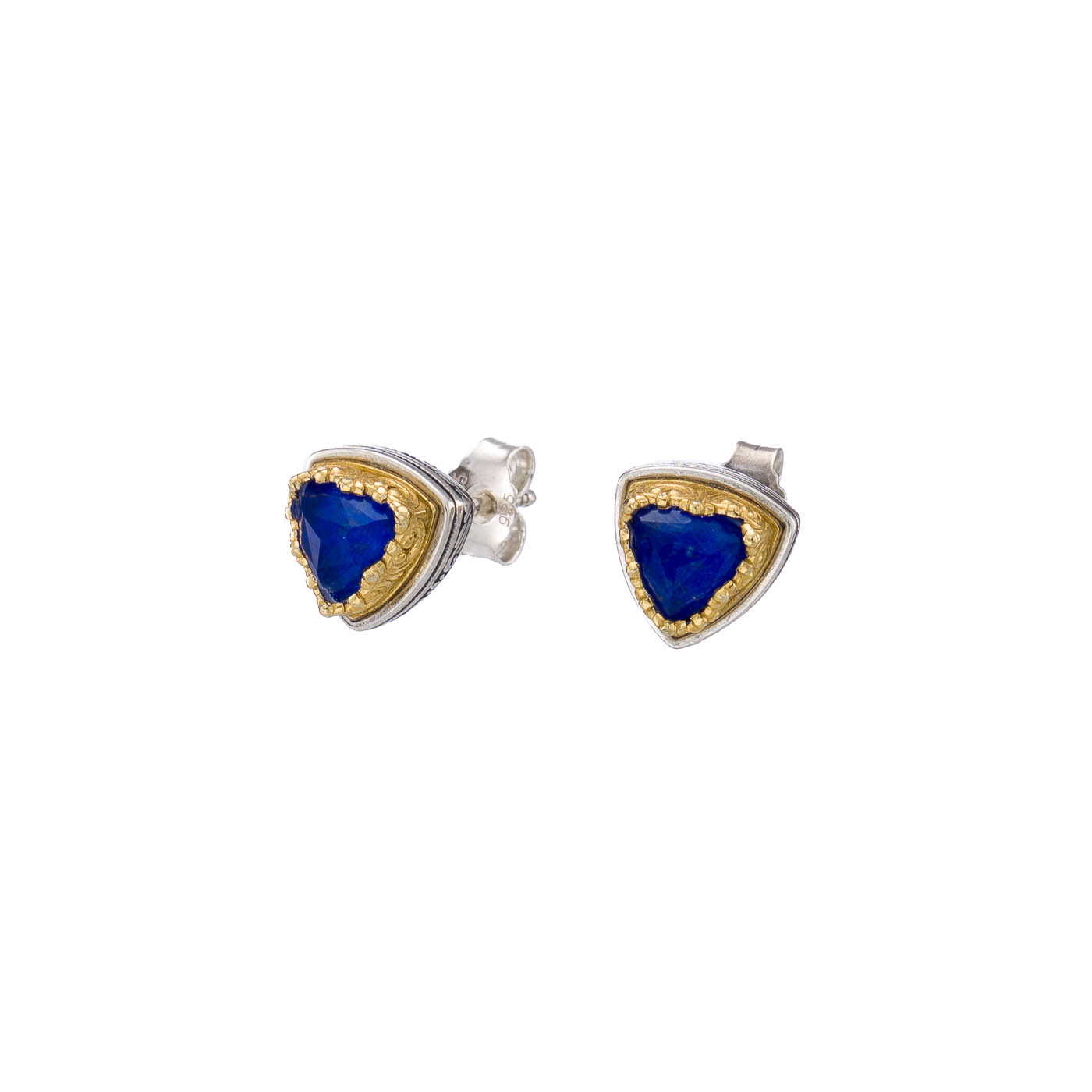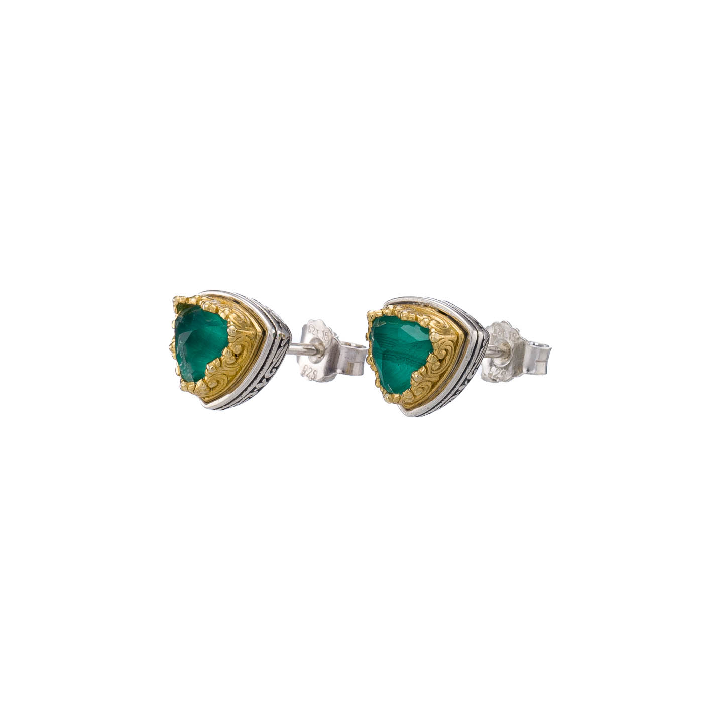Greek Jewelry, Live the glamorous life with these stunning stud earrings. Set in silver they’re bejeweled with triangle-cut Doublet Quartz
