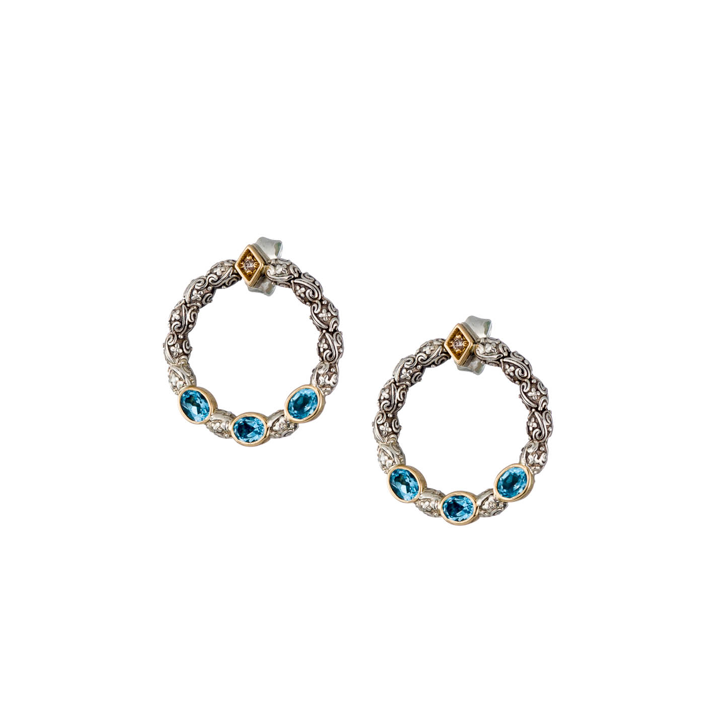 Greek Jewelry, Captivating Brilliance! Round Stud Earrings with Triple Stones”