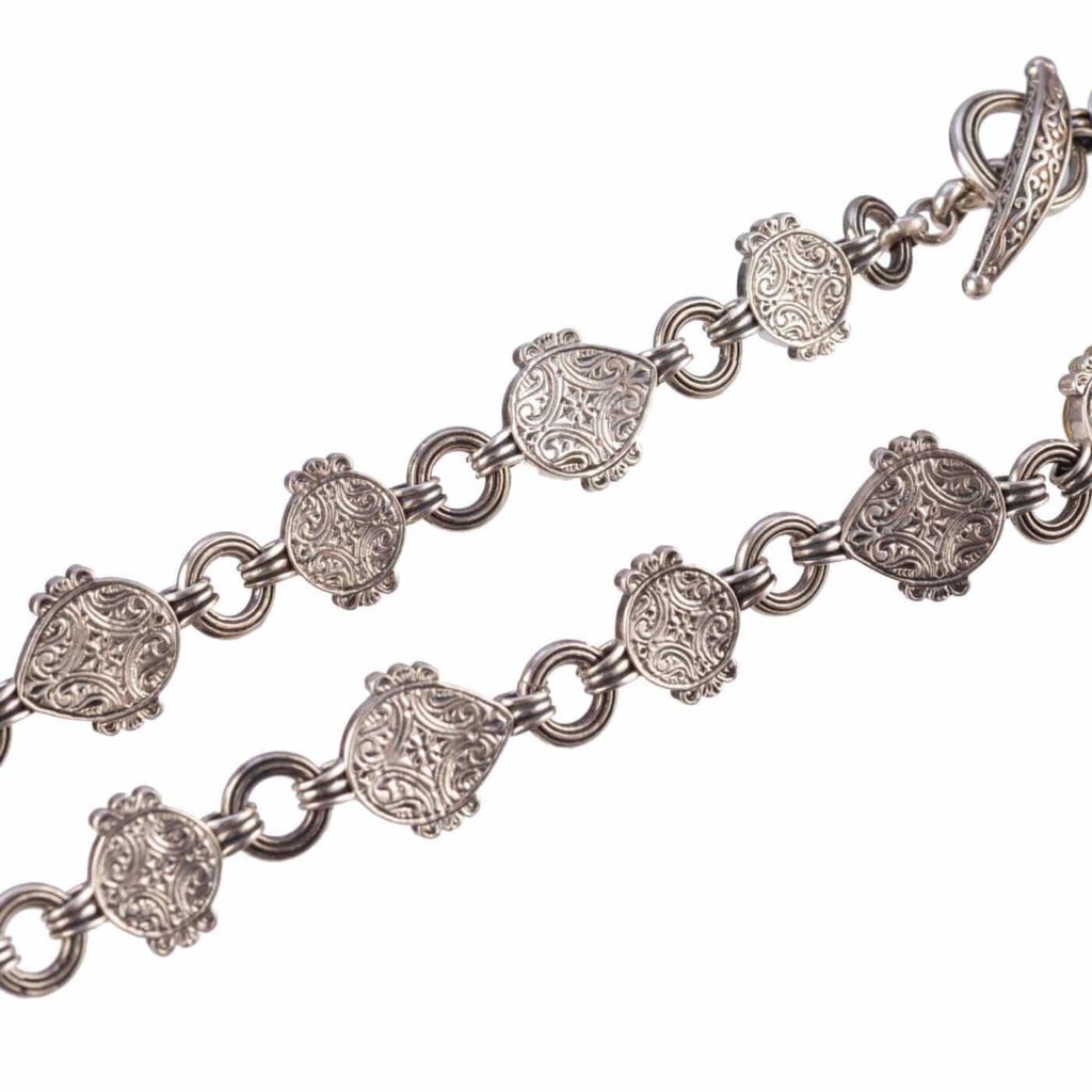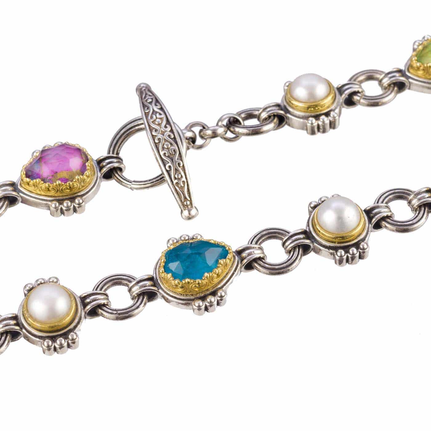 Greek Jewelry, Silver with Gold plated Parts Multi-Colored Stone Link Necklace for Ladies