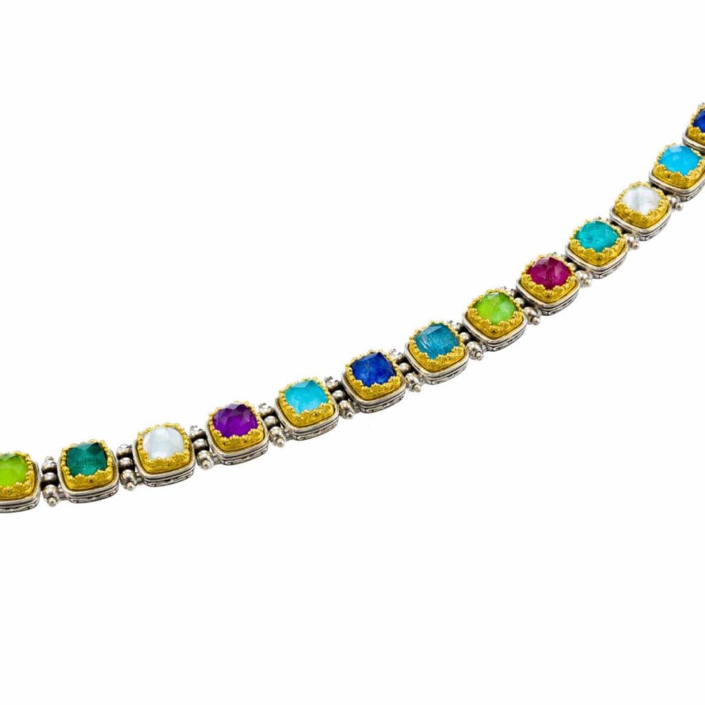 Greek Jewelry, Silver with Gold plated Parts Multi-Colored Stone Link Necklace for Ladies