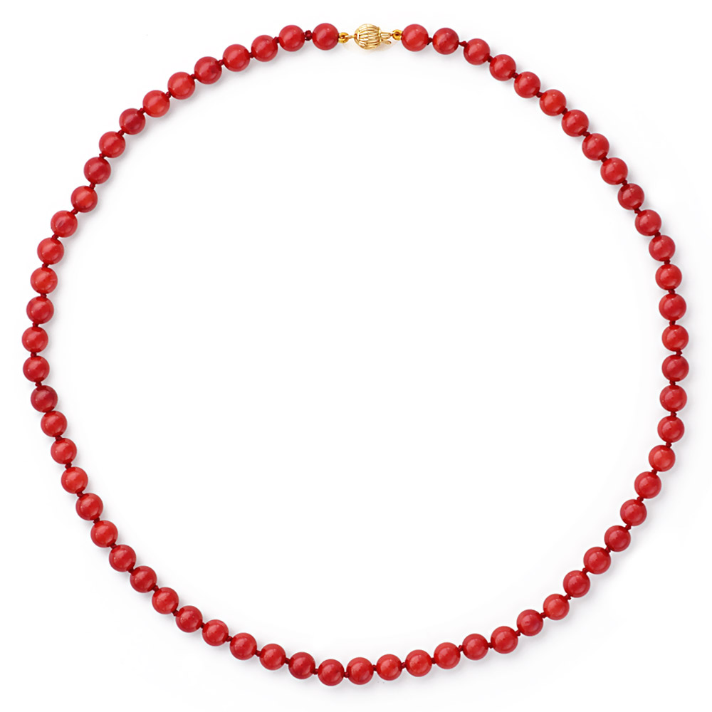 Red Coral Beads 6mm Necklaces in k14 Gold Clasp