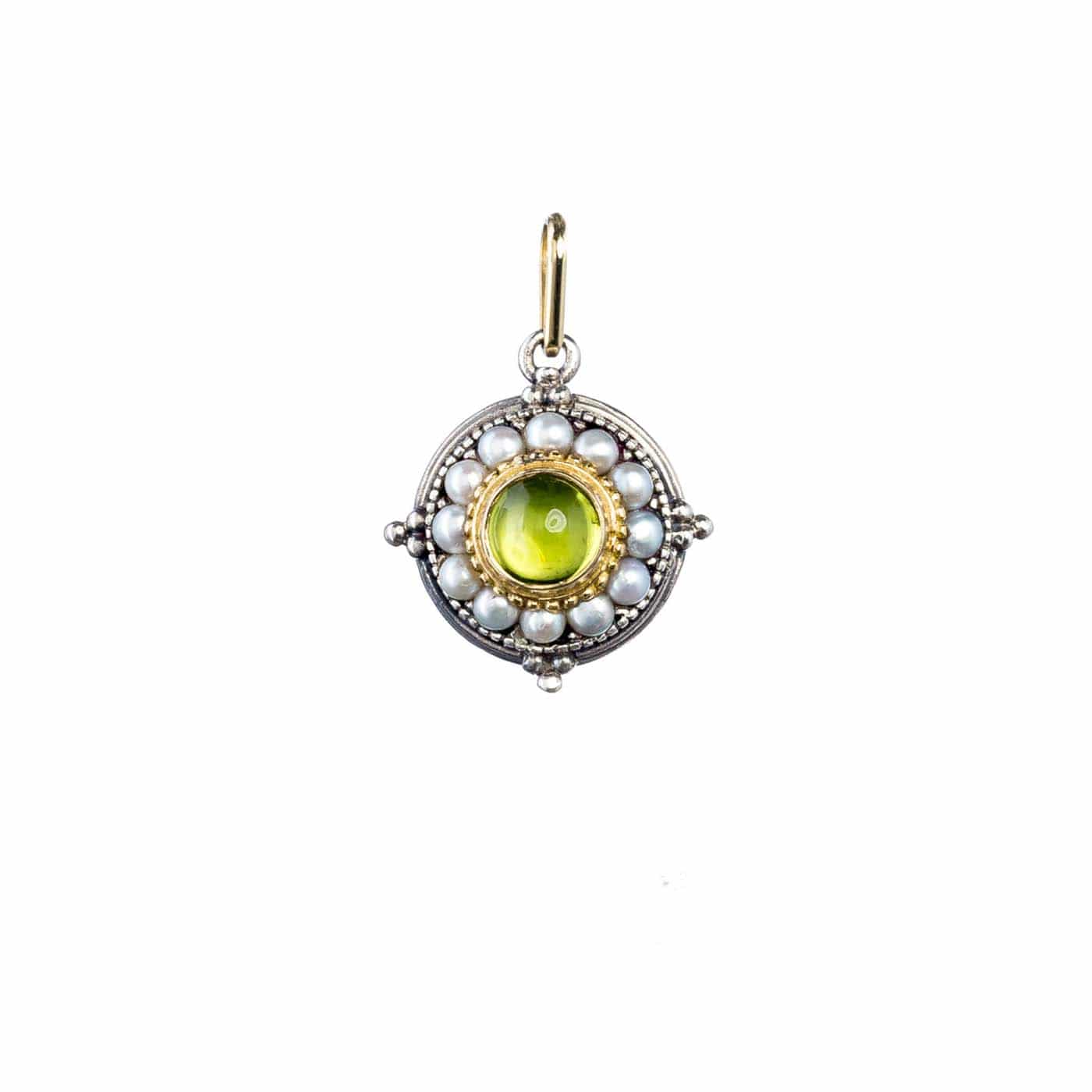 Greek Jewelry, Byzantine Round Pendant for Women’s Yellow Gold k18 and Silver 925