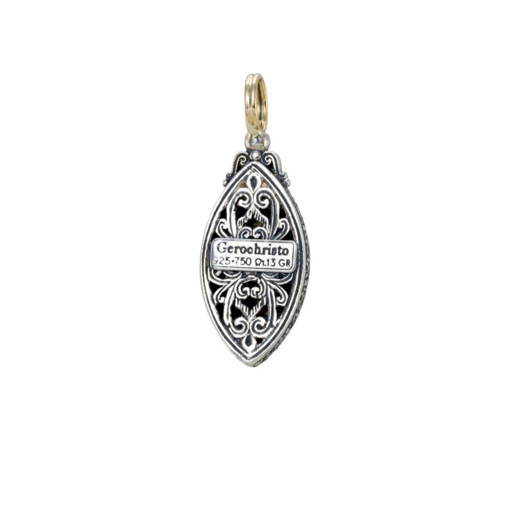 Greek Jewelry, Diamonds Byzantine Navette Pendant for Women’s Yellow Gold k18 and Silver 925