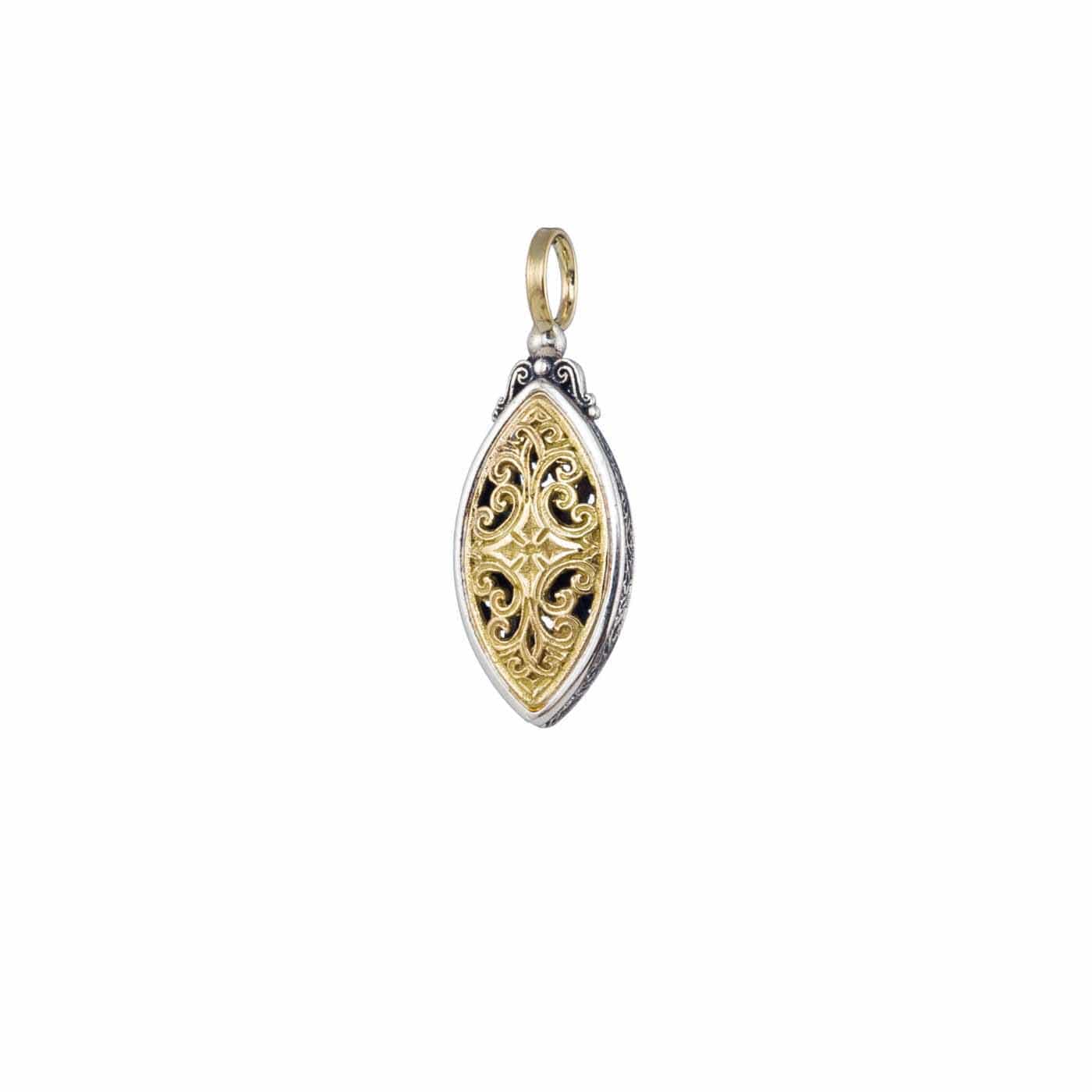 Filigree Byzantine Navette Pendant for Women’s Yellow Gold k18 and Silver 925