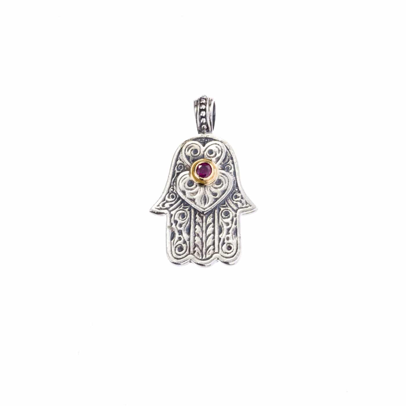 Greek handmade, Sterling Silver and 18k Solid Gold Hamsa pendant, the ancient symbol of Divine protection,