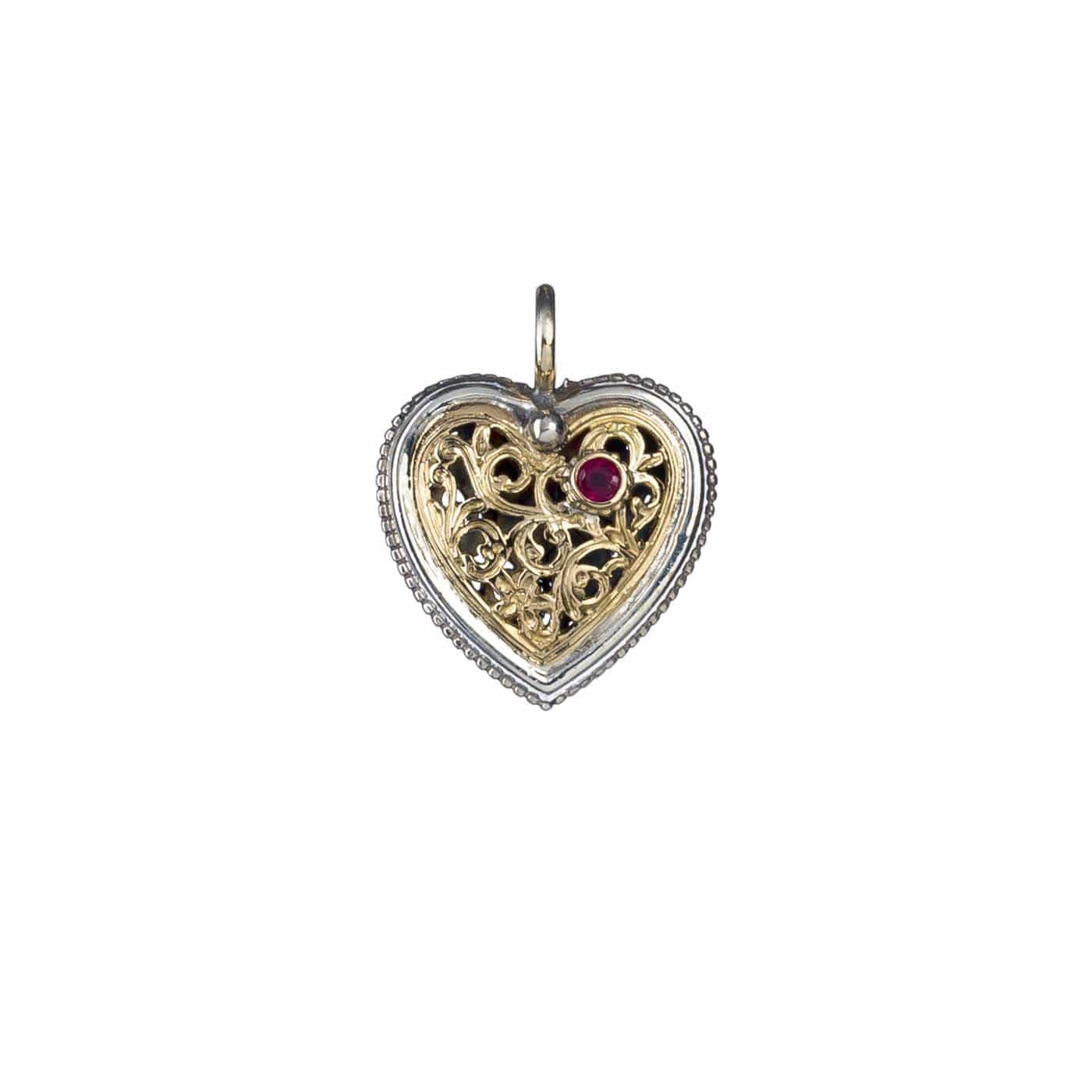 Greek Jewelry, Heart Filigree Byzantine Pendant for Women’s Yellow Gold k18 and Silver 925