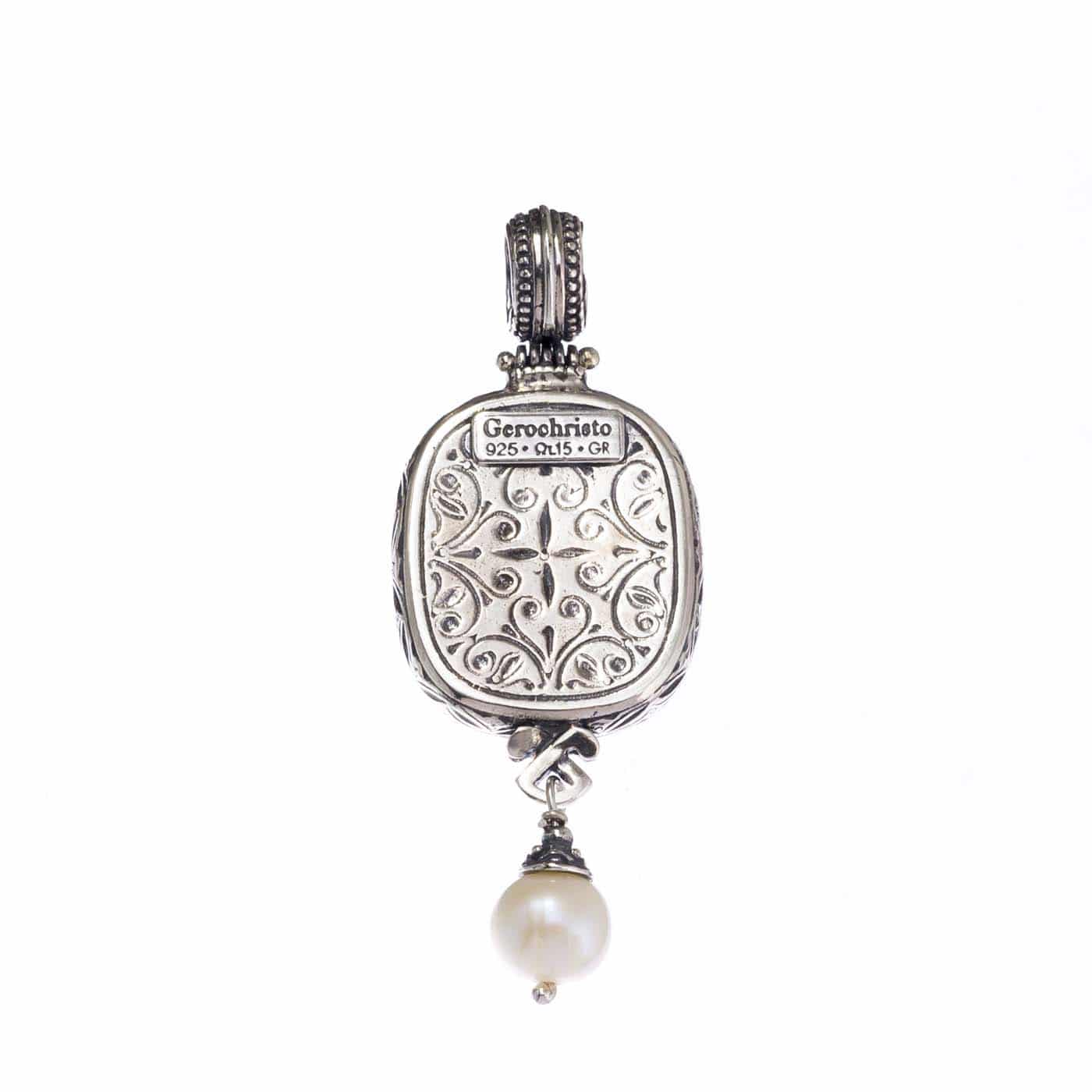 Drop Pendant Flower Byzantine in Sterling Silver 925